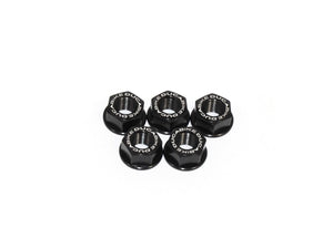 Kit of flange nuts for sprocket carrier made of solid machined ergal with colored surface anodization available in Red, Black, or Gold. Complete with mounting instructions, this kit is interchangeable with the original nuts.