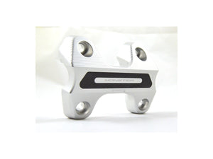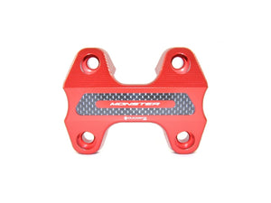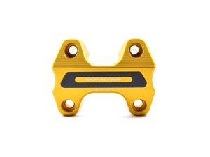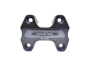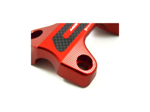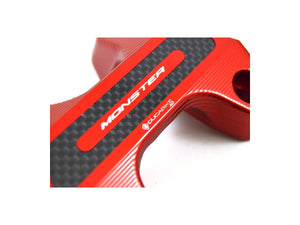 Machined from solid alloy, anodized surface with subsequent treatment with application of carbon fiber.
