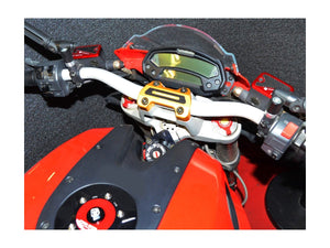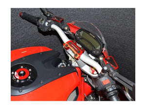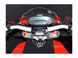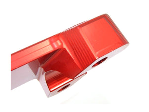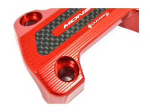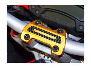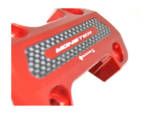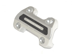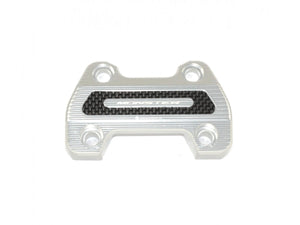 Machined from solid alloy, anodized surface with subsequent treatment with application of carbon fiber.