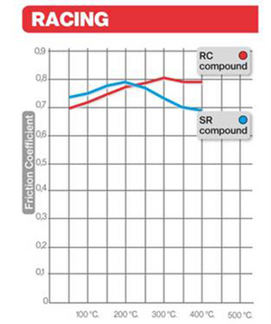 Similar to the RC but just below it, there’s the SR: a sintered compound for sports use on the track and road. Its excellent friction coefficient and stability at high temperatures ensure constant braking from the first lap to the last, and reduced wear means a longer lifecycle.