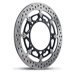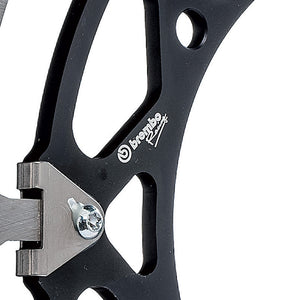 Developed from Brembo's experience in MotoGP and SBK, the “T-Drive” disc introduces a new assembly system between the rotor and hat consisting of eight “T” shaped pins on the disc and eight recesses on the hat, which eliminates the need for fastener studs. As a result of specific studies into process and machining tolerances, this unique configuration transfers braking torque more effectively. T-Drive ensures greater resistance to thermo-mechanical stress, especially in the particularly extreme conditions of racing.