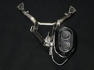 This system retains the ECU-controlled OEM Valve noise limiter to limit the sound at a specific rev range used for European noise compliance, which means that the exhaust servo is retained and no need for a servo delete is required. Retaining this OEM function has no effect on performance and will allow the exhaust to remain acceptably quiet at cruise and light throttle openings and when the throttle is opened aggressively the ECU will open the valve to enable full free-flow performance and sound.
