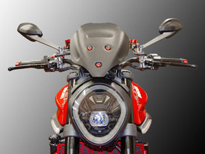 The design of the windshield has been studied to guarantee aerodynamic protection at high speeds.