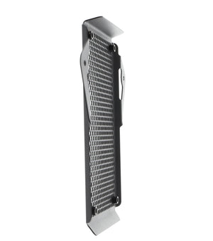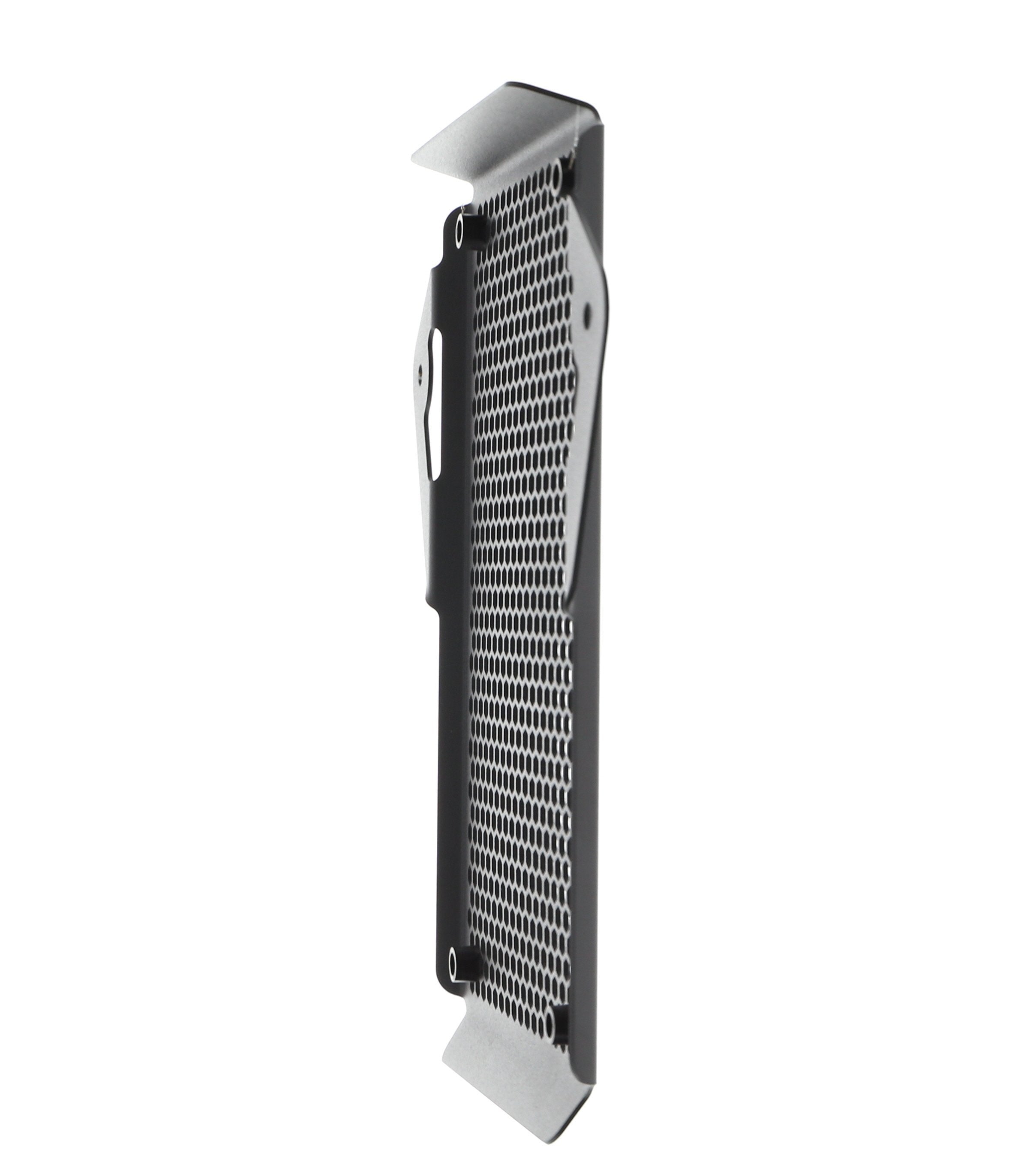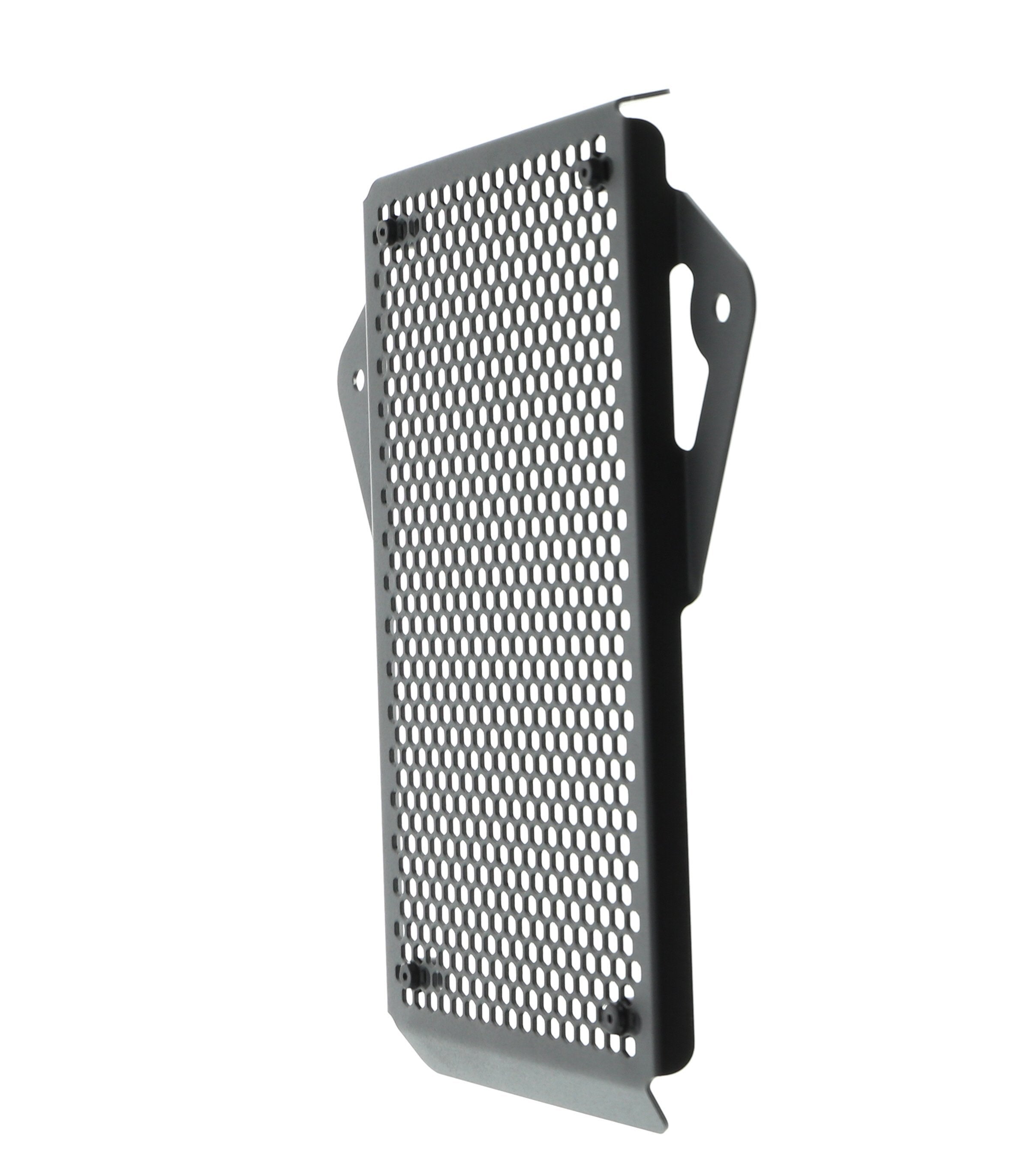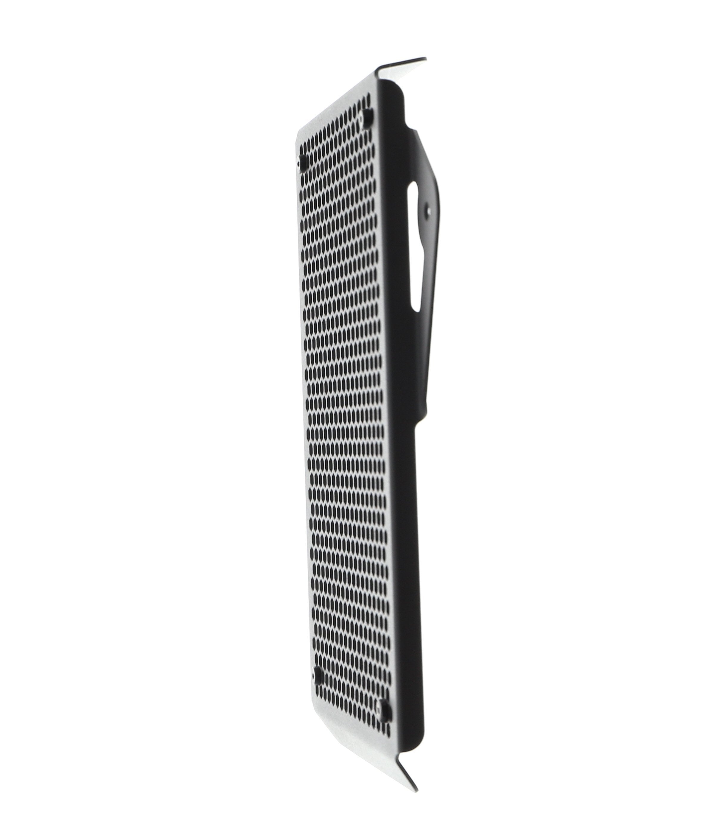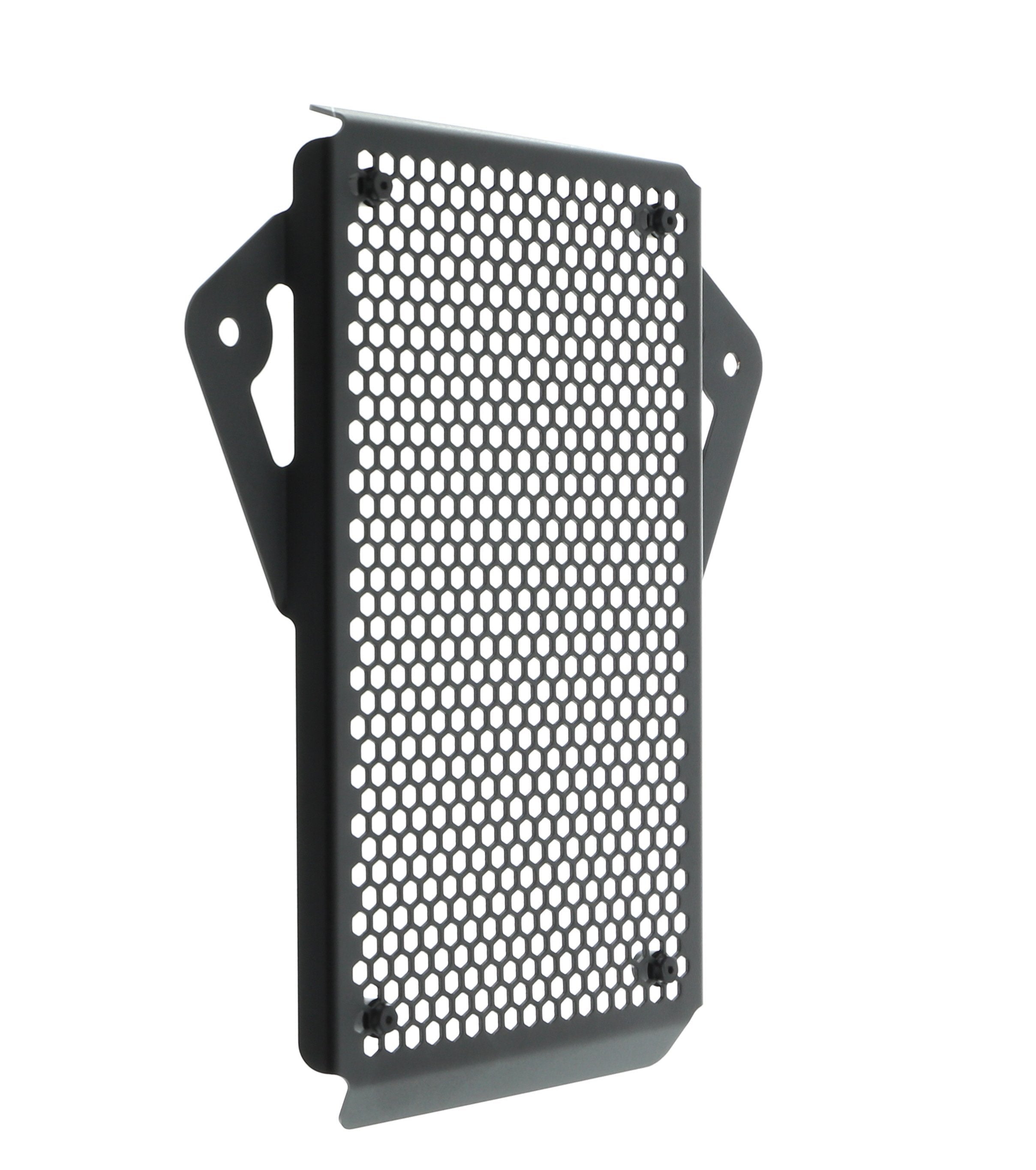 Hexagonal hole pattern to optimise airflow whilst providing maximum protection from road debris.