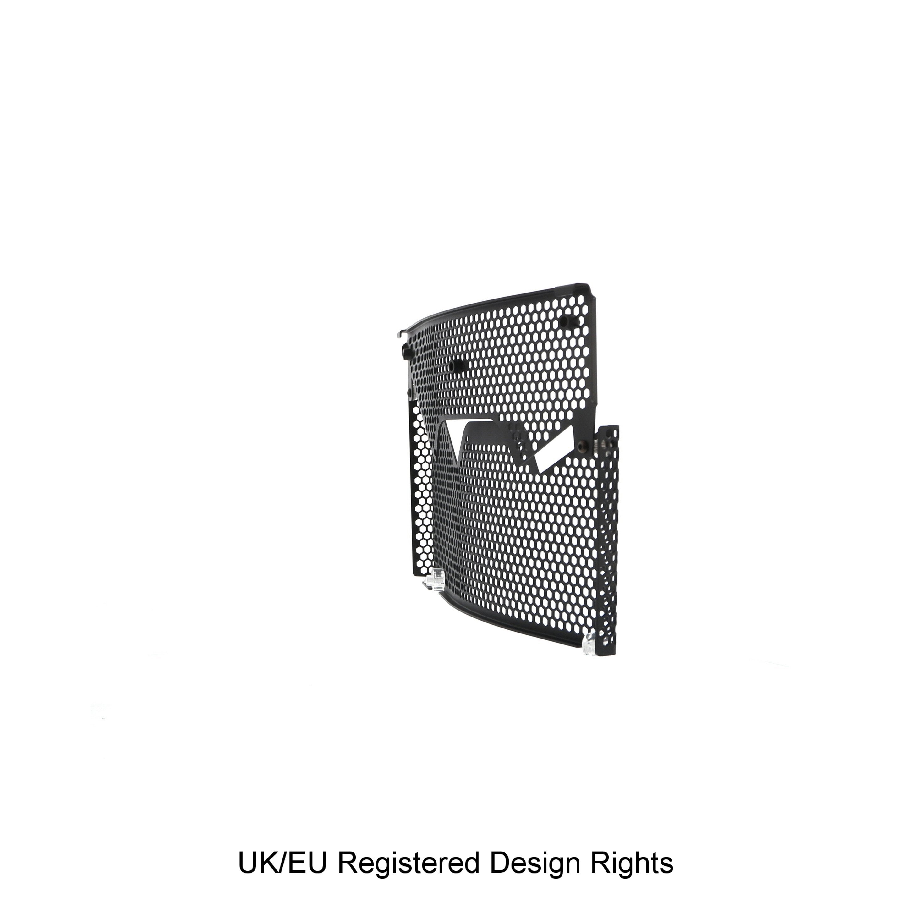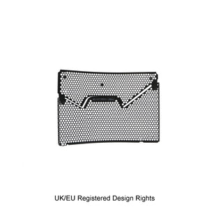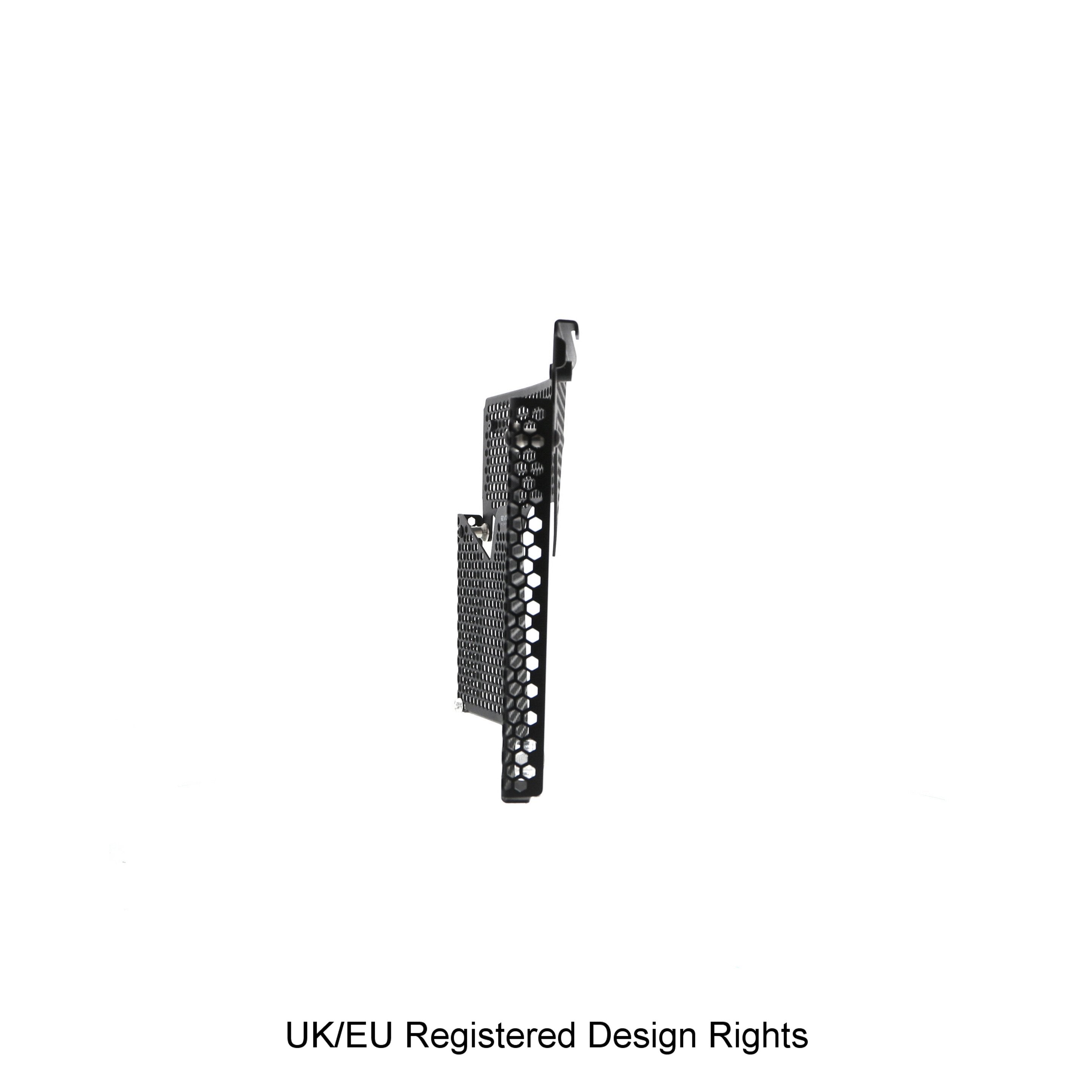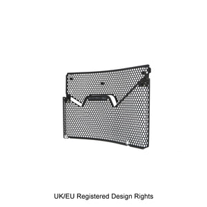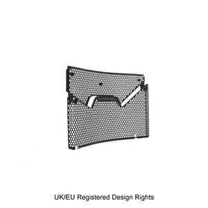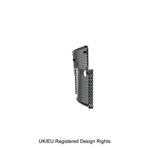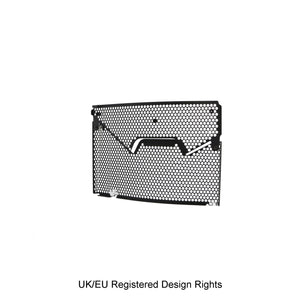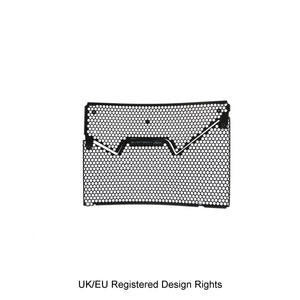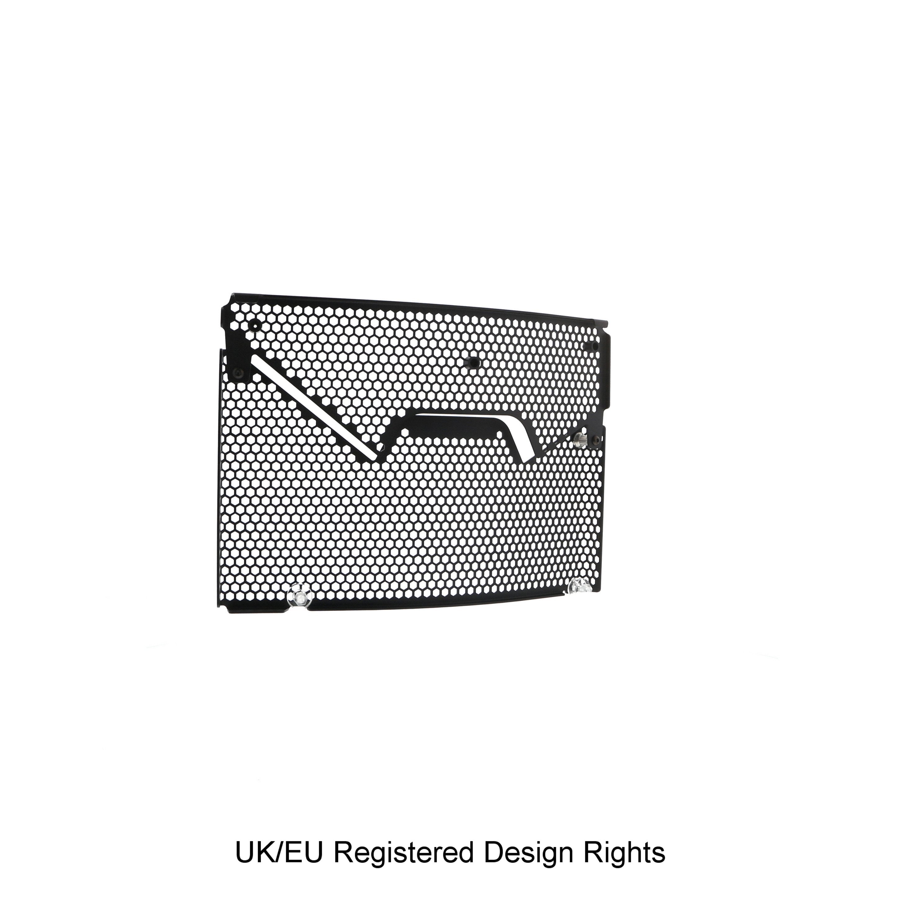 Hexagonal hole pattern to optimise airflow whilst providing maximum protection from road debris.