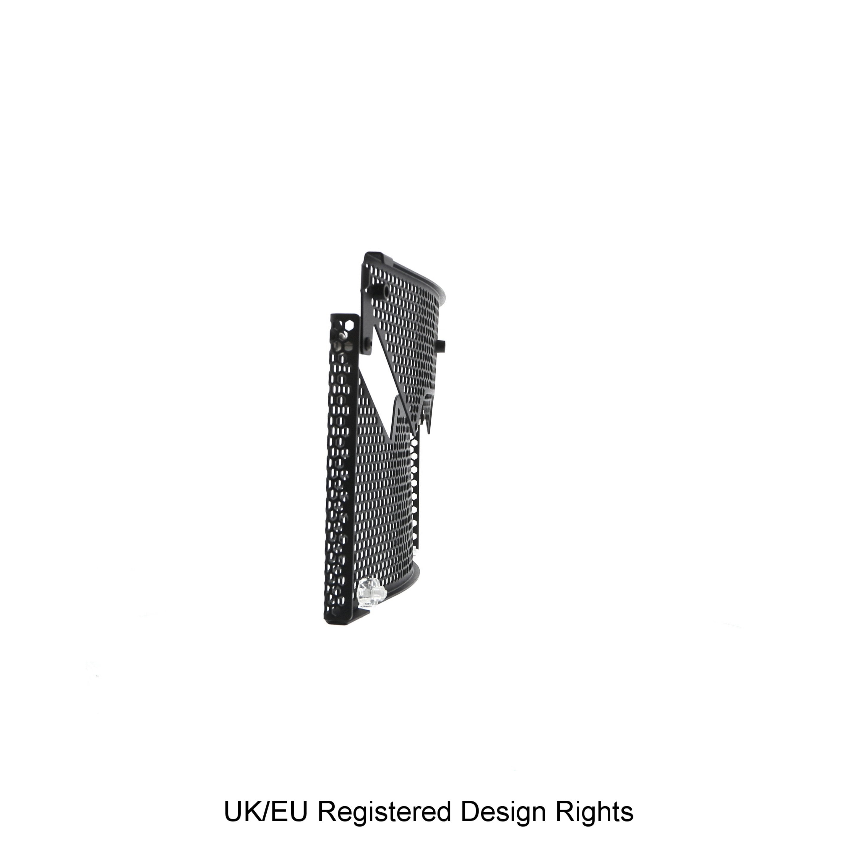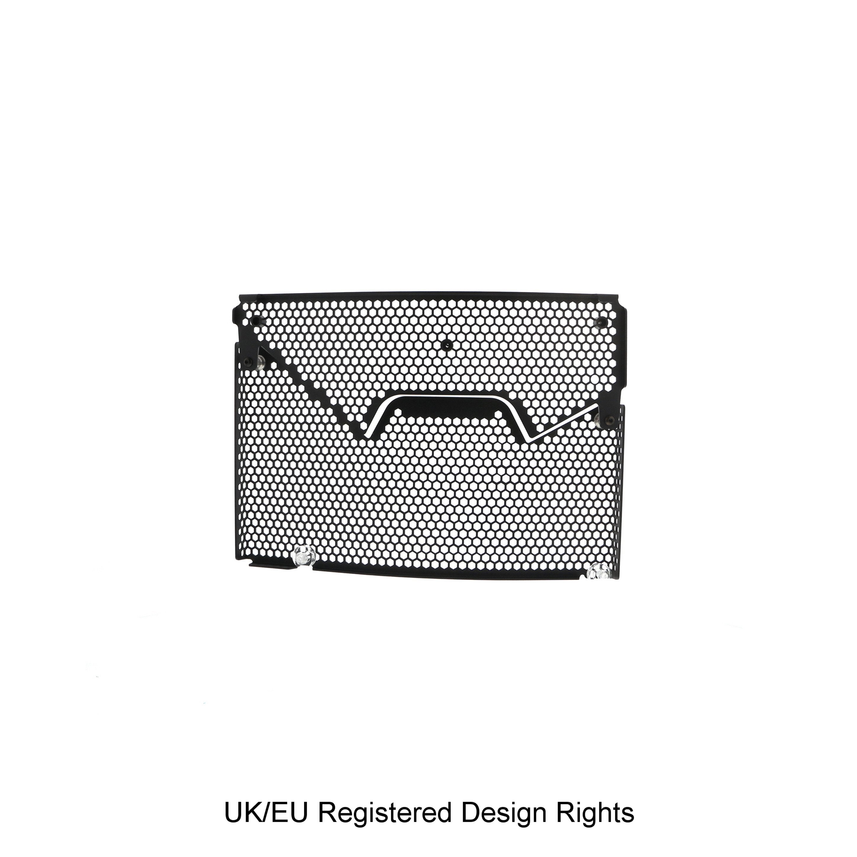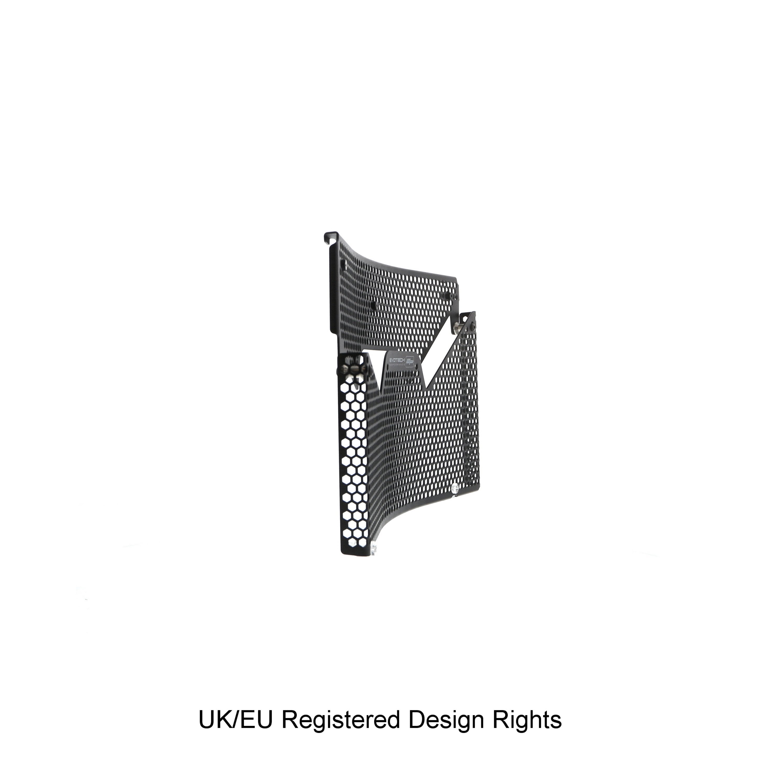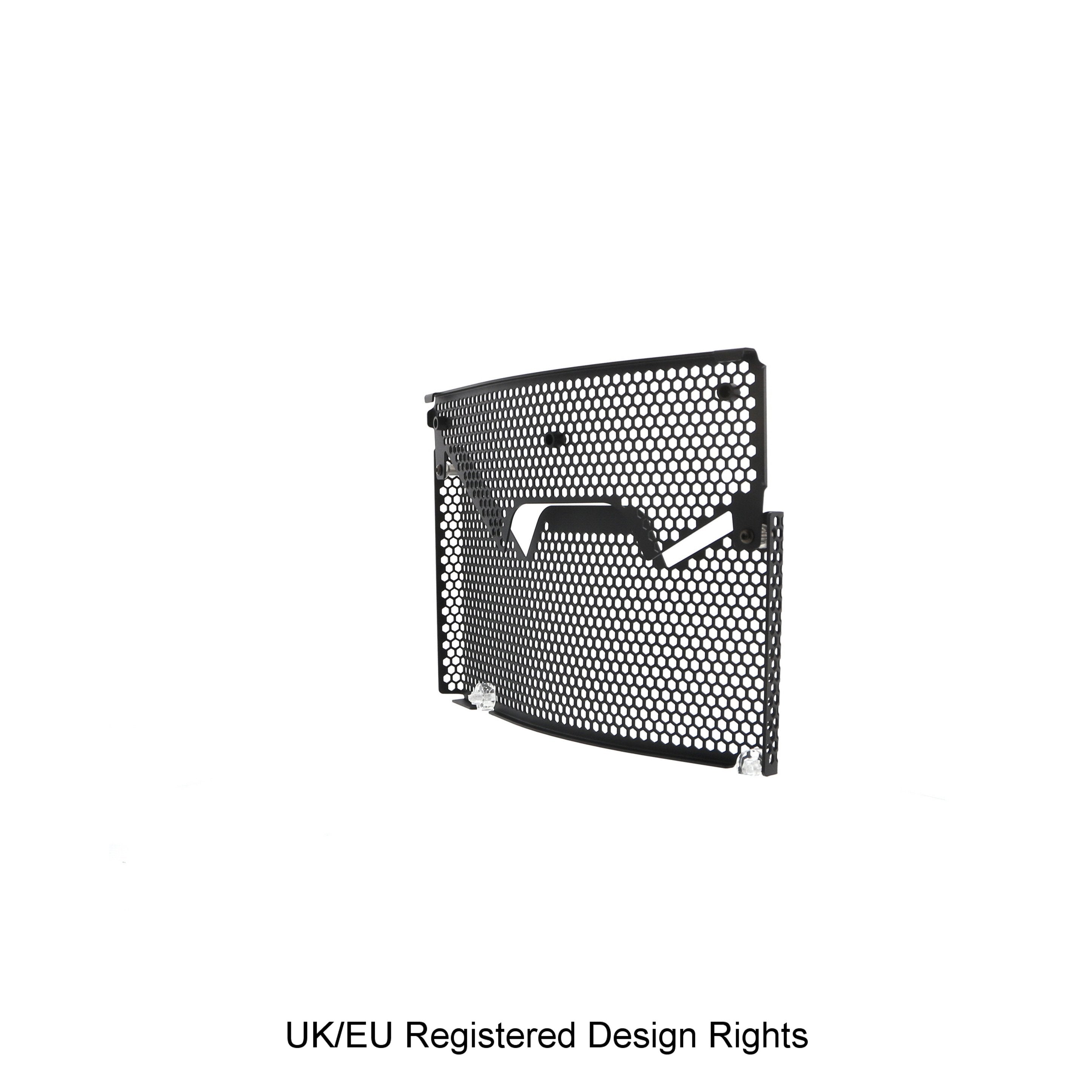 Hexagonal hole pattern to optimise airflow whilst providing maximum protection from road debris.