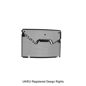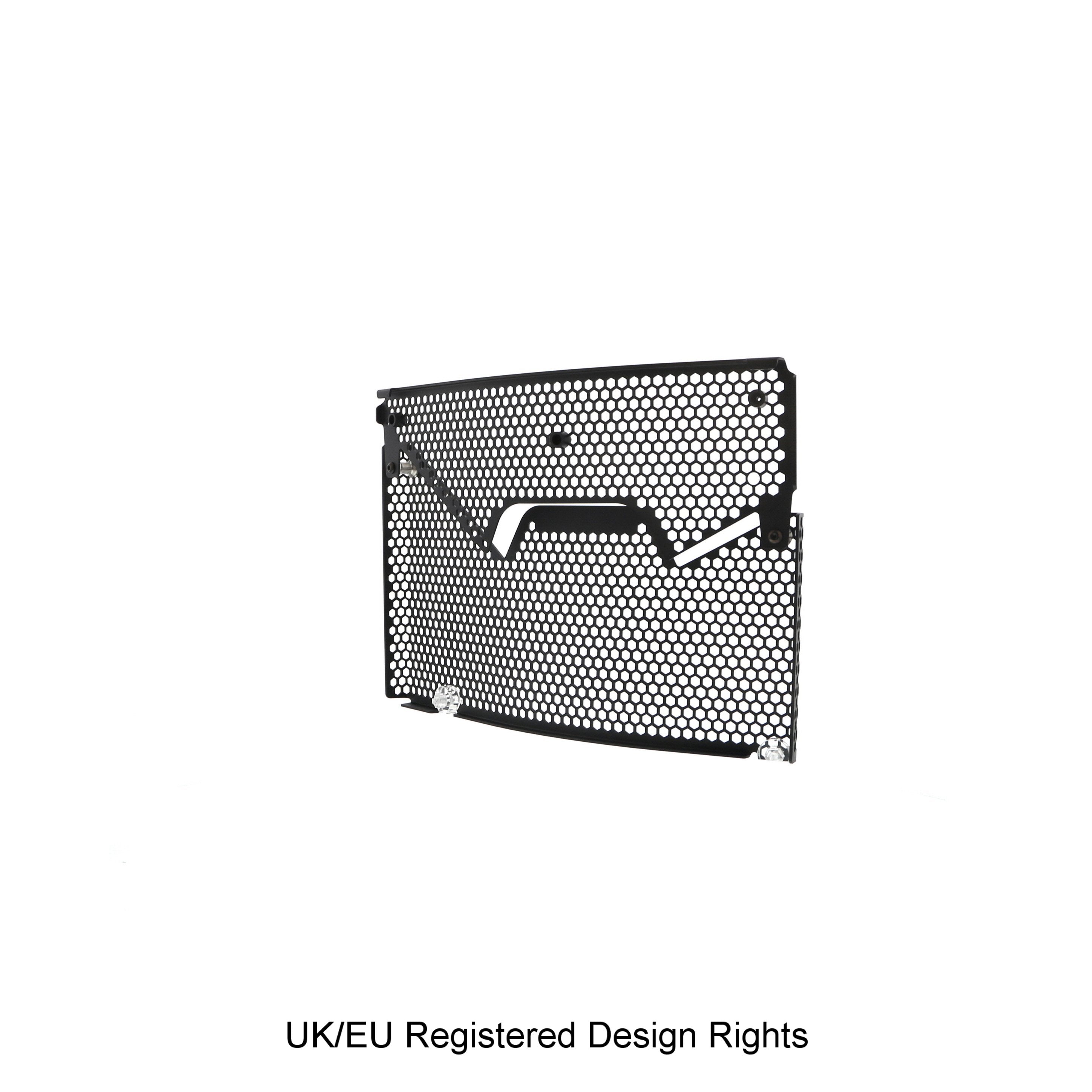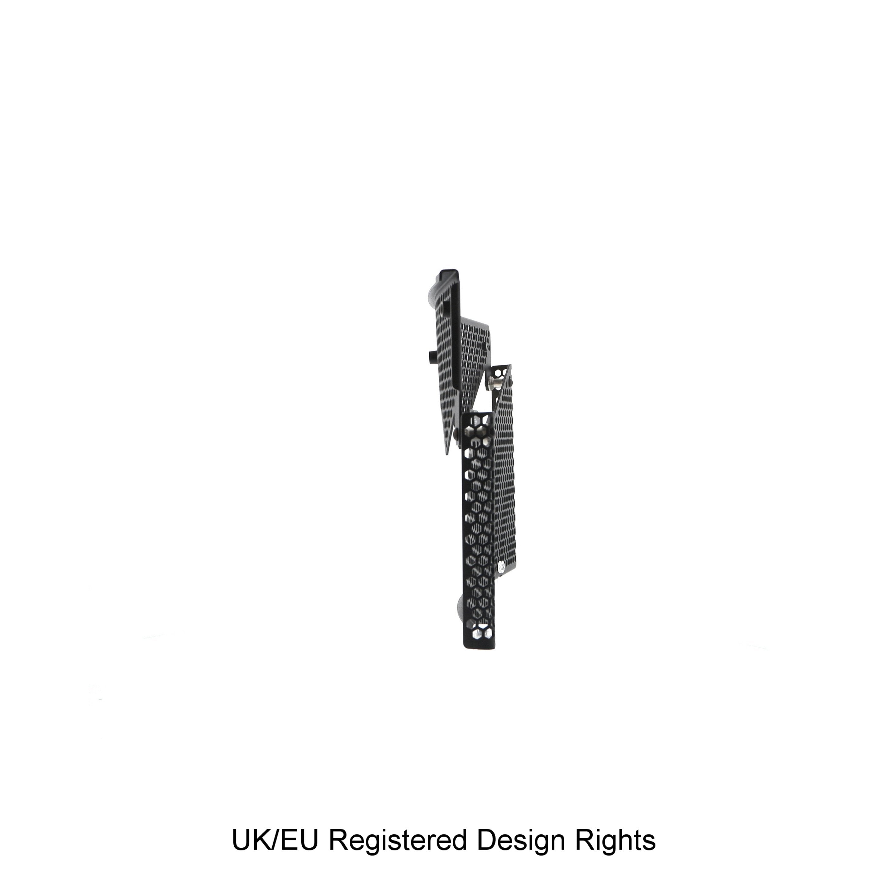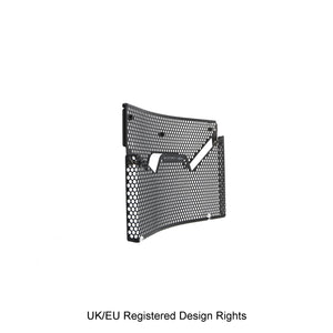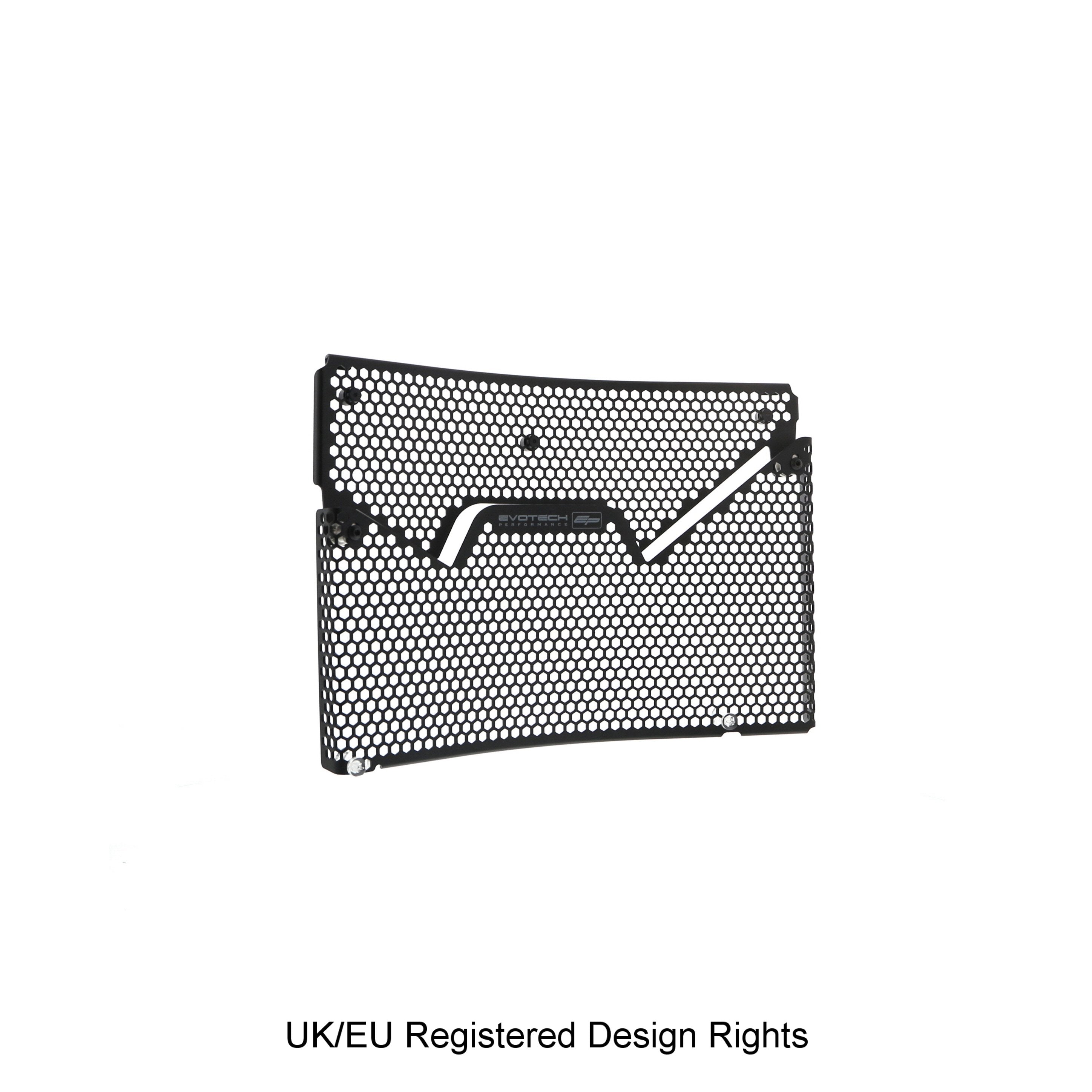 Hexagonal hole pattern to optimise airflow whilst providing maximum protection from road debris.