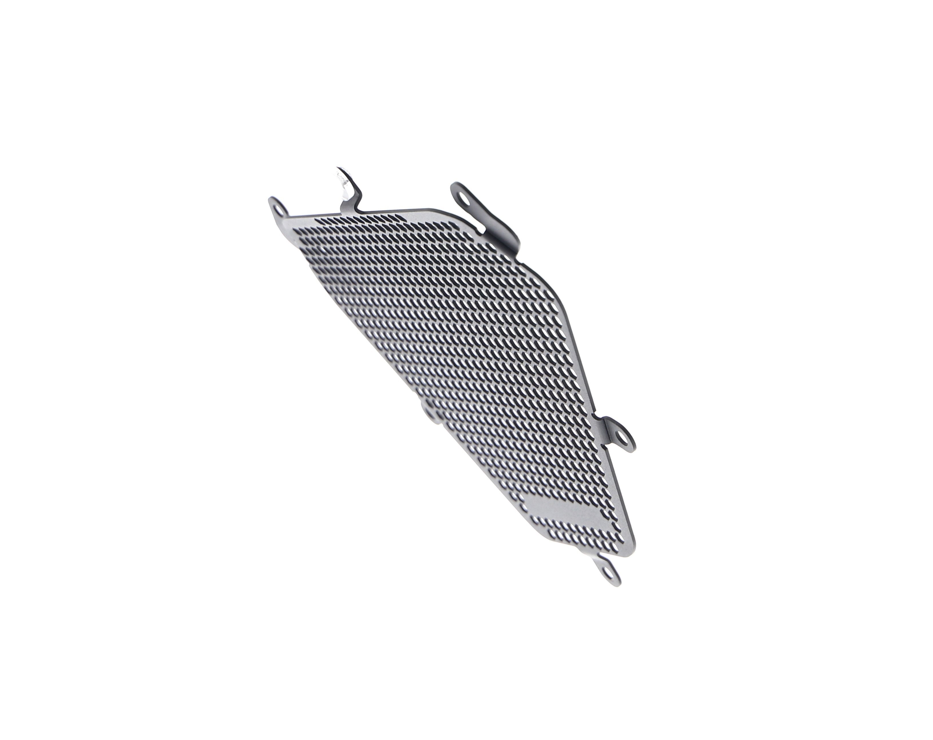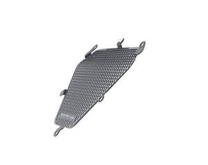 Hexagonal hole pattern to optimise airflow whilst providing maximum protection from road debris.