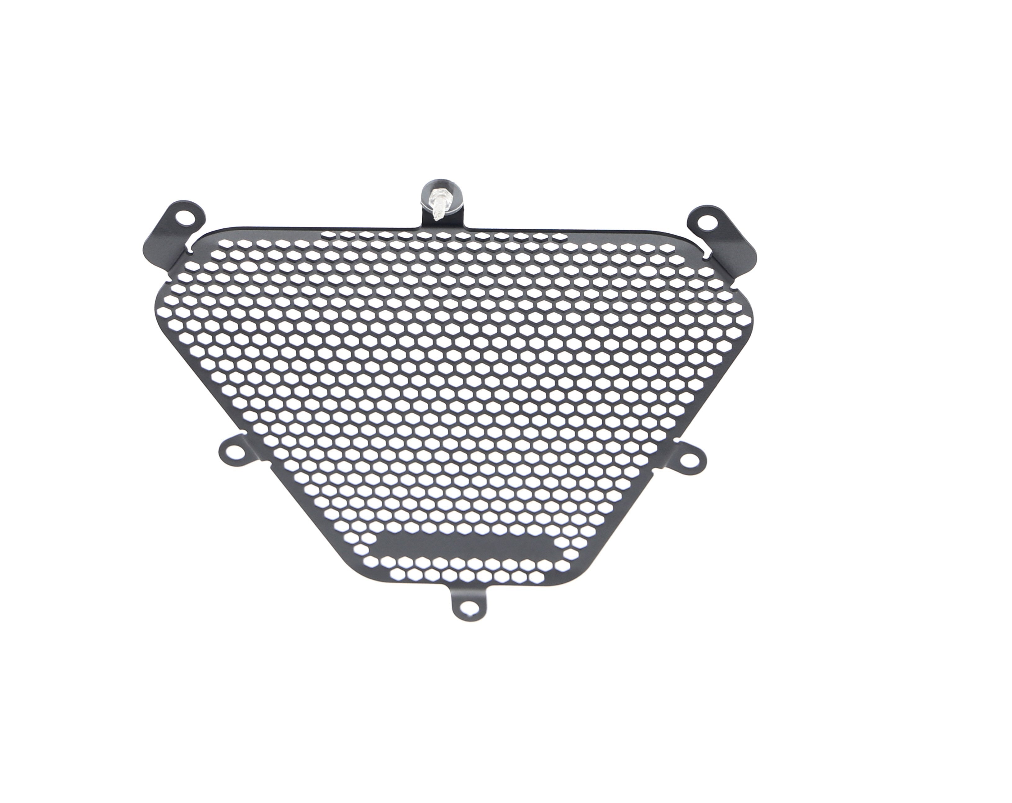 Hexagonal hole pattern to optimise airflow whilst providing maximum protection from road debris.
