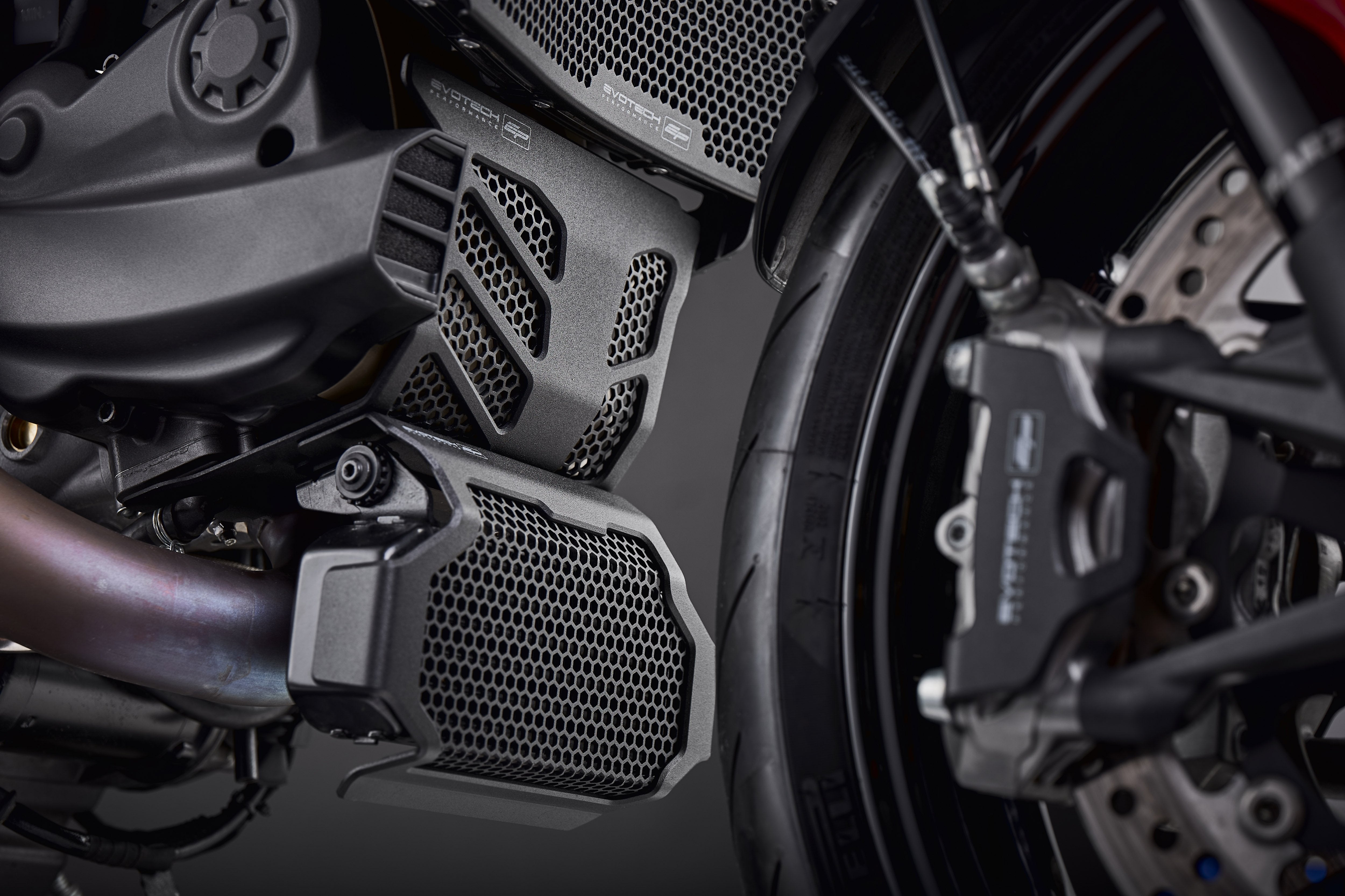 Evotech Performance Hypermotard oil cooler guards attach to your bike modification-free.