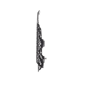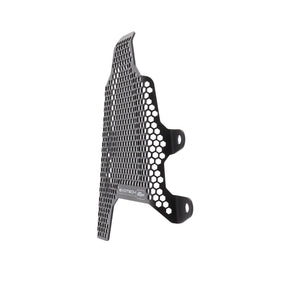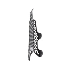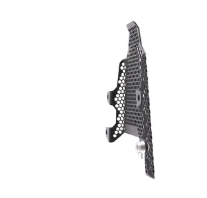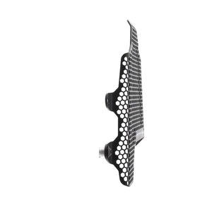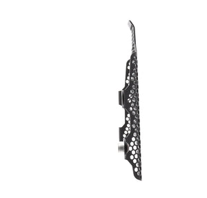 Hexagonal hole pattern to optimise airflow whilst providing maximum protection from road debris.