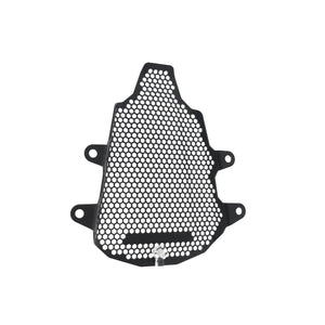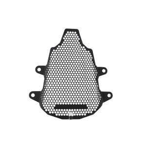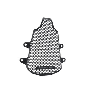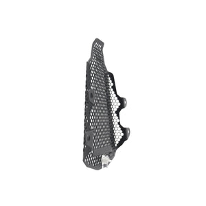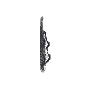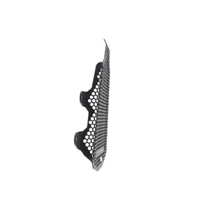 Hexagonal hole pattern to optimise airflow whilst providing maximum protection from road debris.