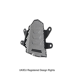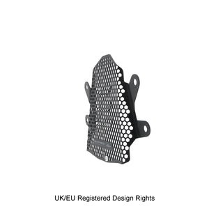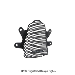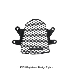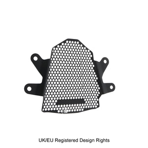 Hexagonal hole pattern to optimise airflow whilst providing maximum protection from road debris.