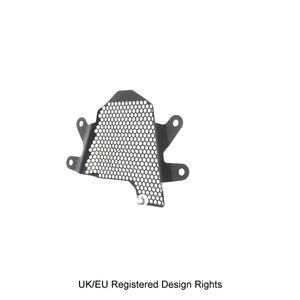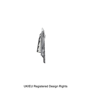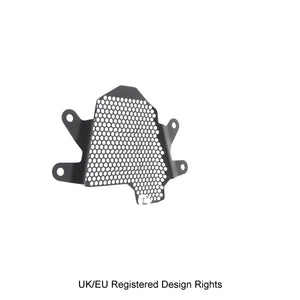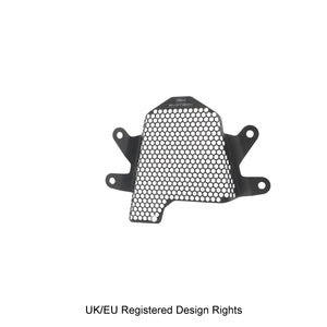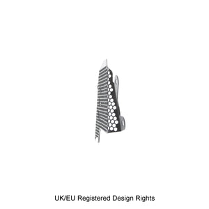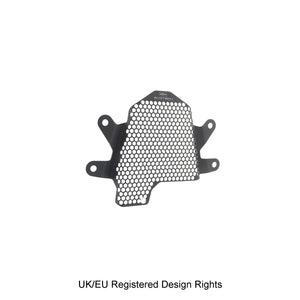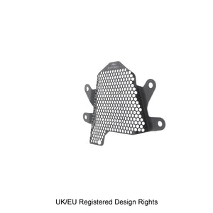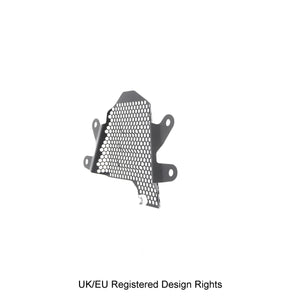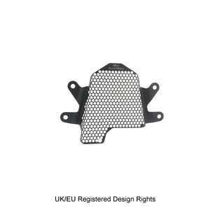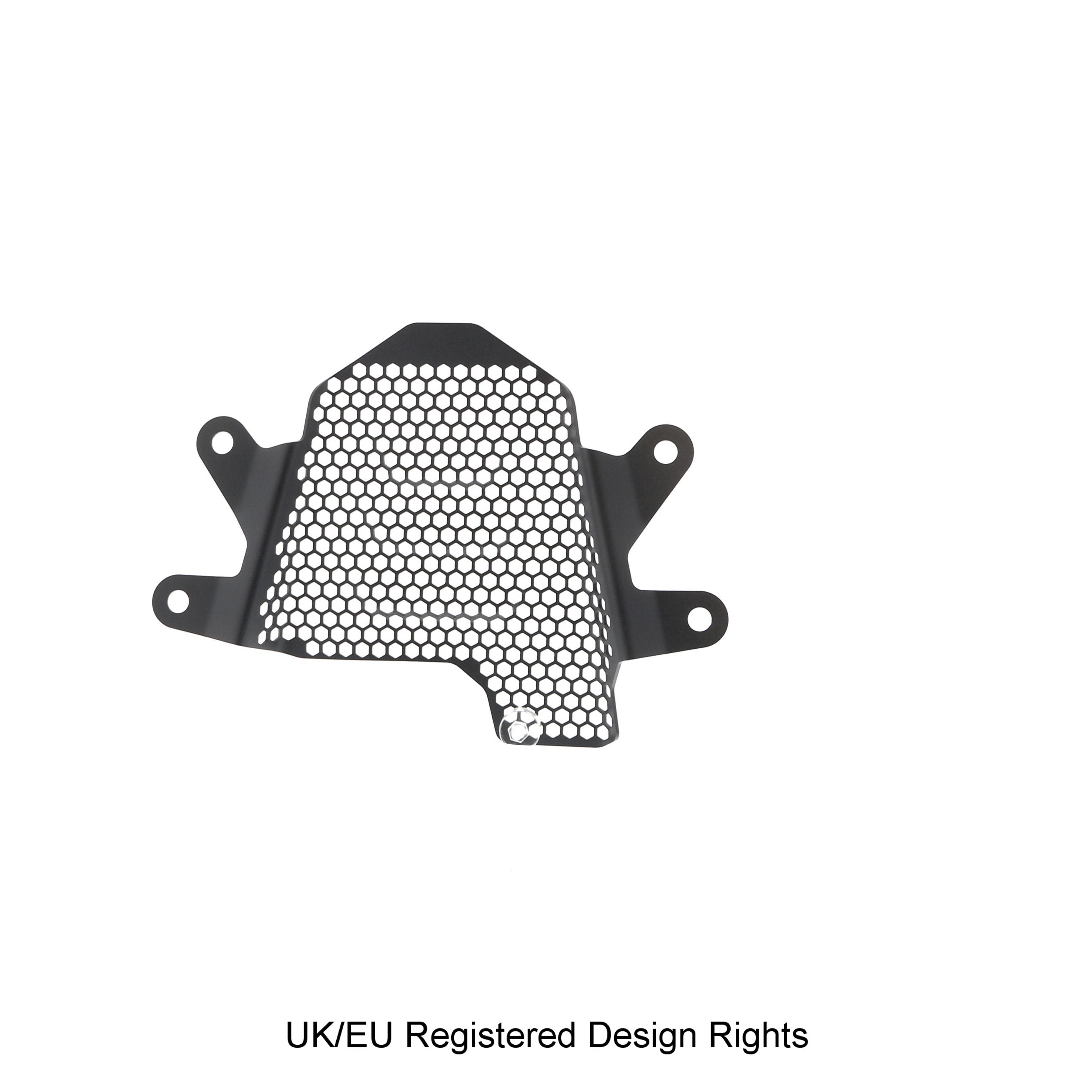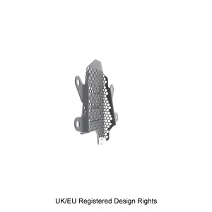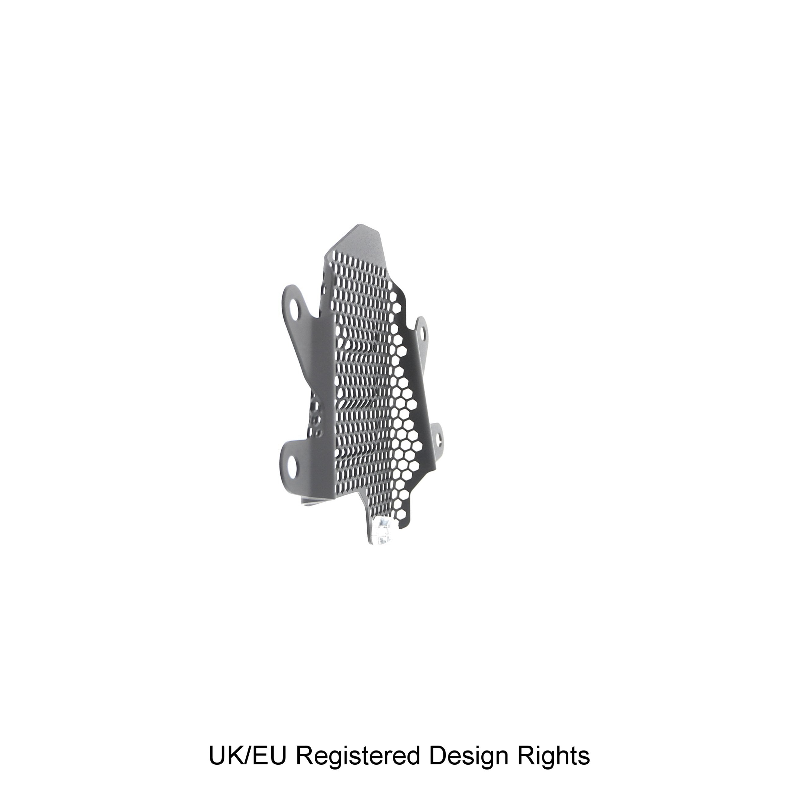 Hexagonal hole pattern to optimise airflow whilst providing maximum protection from road debris.