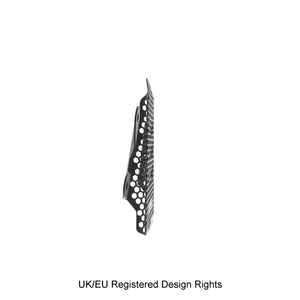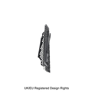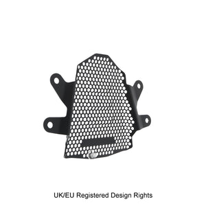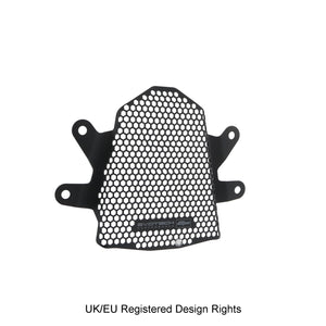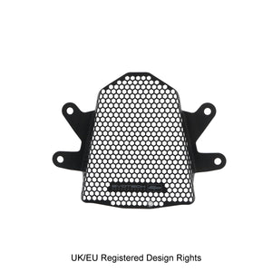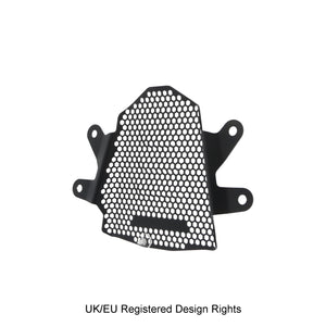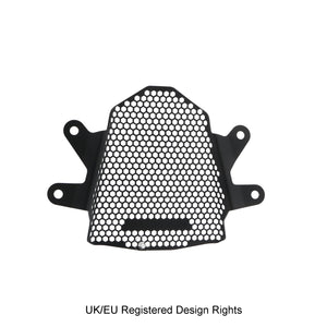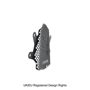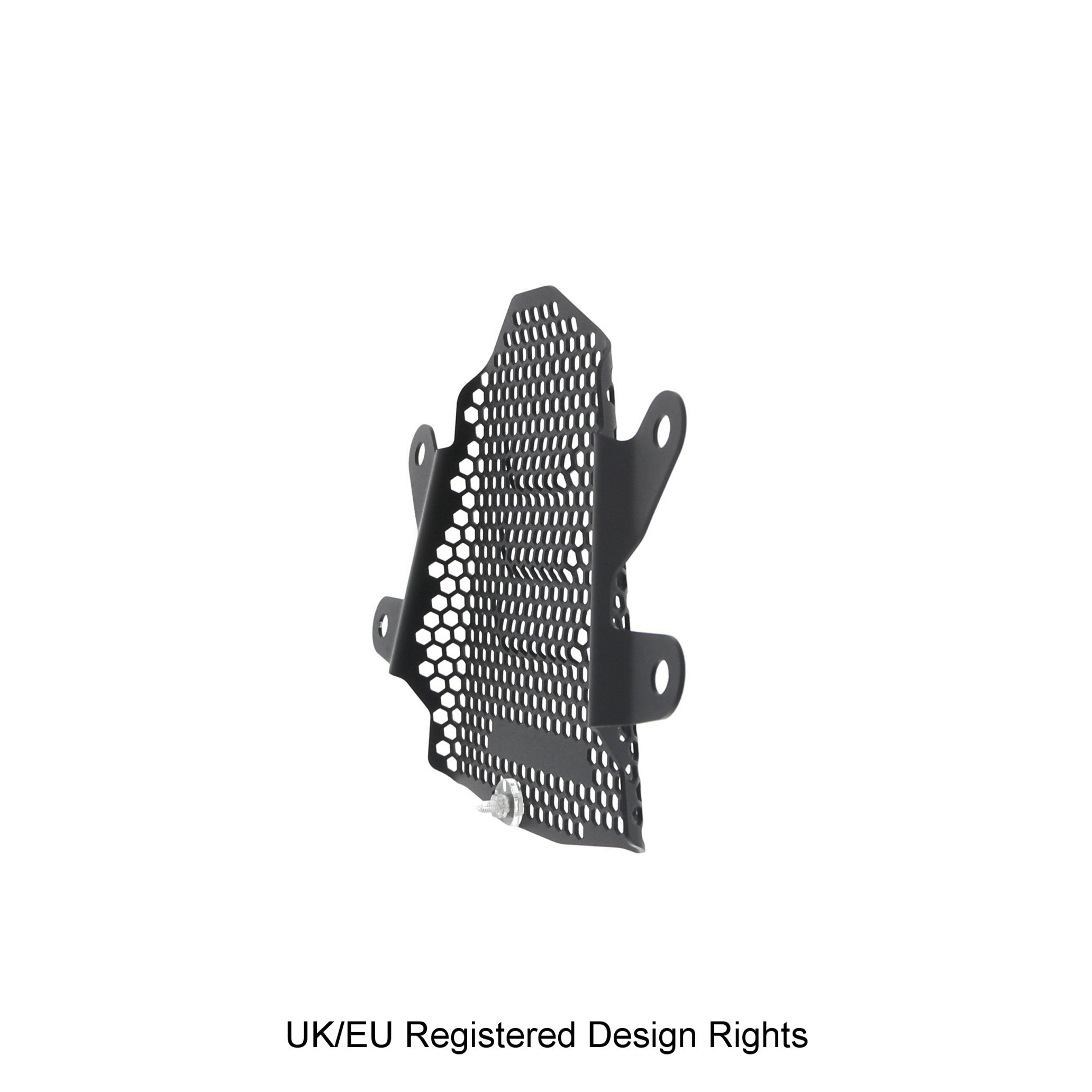 Hexagonal hole pattern to optimise airflow whilst providing maximum protection from road debris.