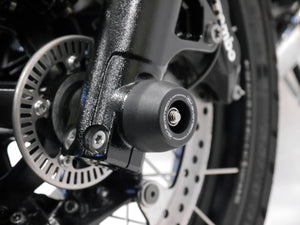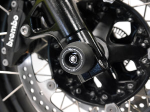EP's innovative design brings protection to the front wheel and lower forks of the R nineT Urban G/S with Front Spindle Bobbins. A durable nylon bobbin sits on top of an aluminium spacer on either side of your front wheel. These are held in place by a stainless steel spindle rod. The nylon slider and aluminium inner should receive any unexpected impact before the machine. The nylon header is designed to rotate on impact to decrease tension and stress on your motorcycle.