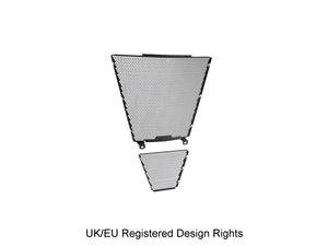 Simply put, EP Radiator Guard and EP Oil Cooler Guard protect these two vital components from major damage by road debris, while allowing the necessary cooling air to pass through. The radiator and oil cooler's delicate fins easily bend to restrict the flow of cooling air, which can lead to overheating and reduced engine performance. Both units have internal cores that are prone to being holed by stones etc. Leaking coolant will make the CBR 1000RR-R SP inoperable through overheating, while a holed oil cooler will reduce oil pressure and up the risk of engine damage.