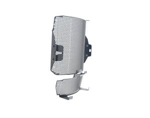 EP radiator and oil cooler guards help protect the motorcycle radiator and oil cooler from road debris damage that is often picked up and thrown by the front tyre. Both these components are made up of delicate cooling fins that easily bend, and internal pipework that can be damaged beyond safe repair. Misaligned cooling fins block passing air to cause overheating of the coolant / oil and can lead to the engine overheating. Holed waterways and oil carrying galleys cause rapid overheating with a high possibility of engine damage. Leaking coolant / oil not only causes overheating but can cause loss of grip if it reaches the motorcycle's tyres.