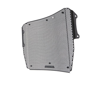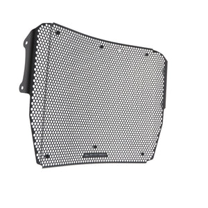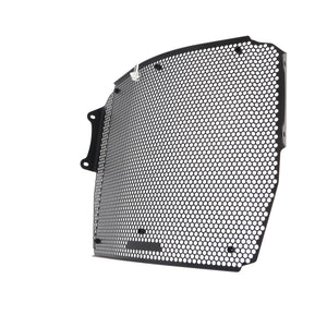 Simply put, an EP Radiator Guard protects the Triumph Speed Triple 1200 RR radiator from damage caused by road debris (stones, mud, dropped waste etc), while at the same time allowing cool air to pass through. The radiator's thin, soft aluminium cooling fins easily bend, and misaligned fins can restrict cooling air, which can lead to overheating. The radiator's internal core is also susceptible to being holed by stones that can be picked up by the front tyre or other traffic and flung directly into the radiator. Leaking coolant will make the Triumph Speed Triple 1200 RR overheat, which, in turn, can lead to engine damage.
