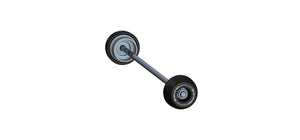 Designed to protect the driveline side of the Tuareg 660, the spindle head protrudes from the rear wheel hoping to receive impact before the swing arm. The inventive design allows the nylon bobbin to spin above the aluminium core which brings greater durability and reduces stress on the wheel. The bobbin is retained through the wheel using a spindle rod.
