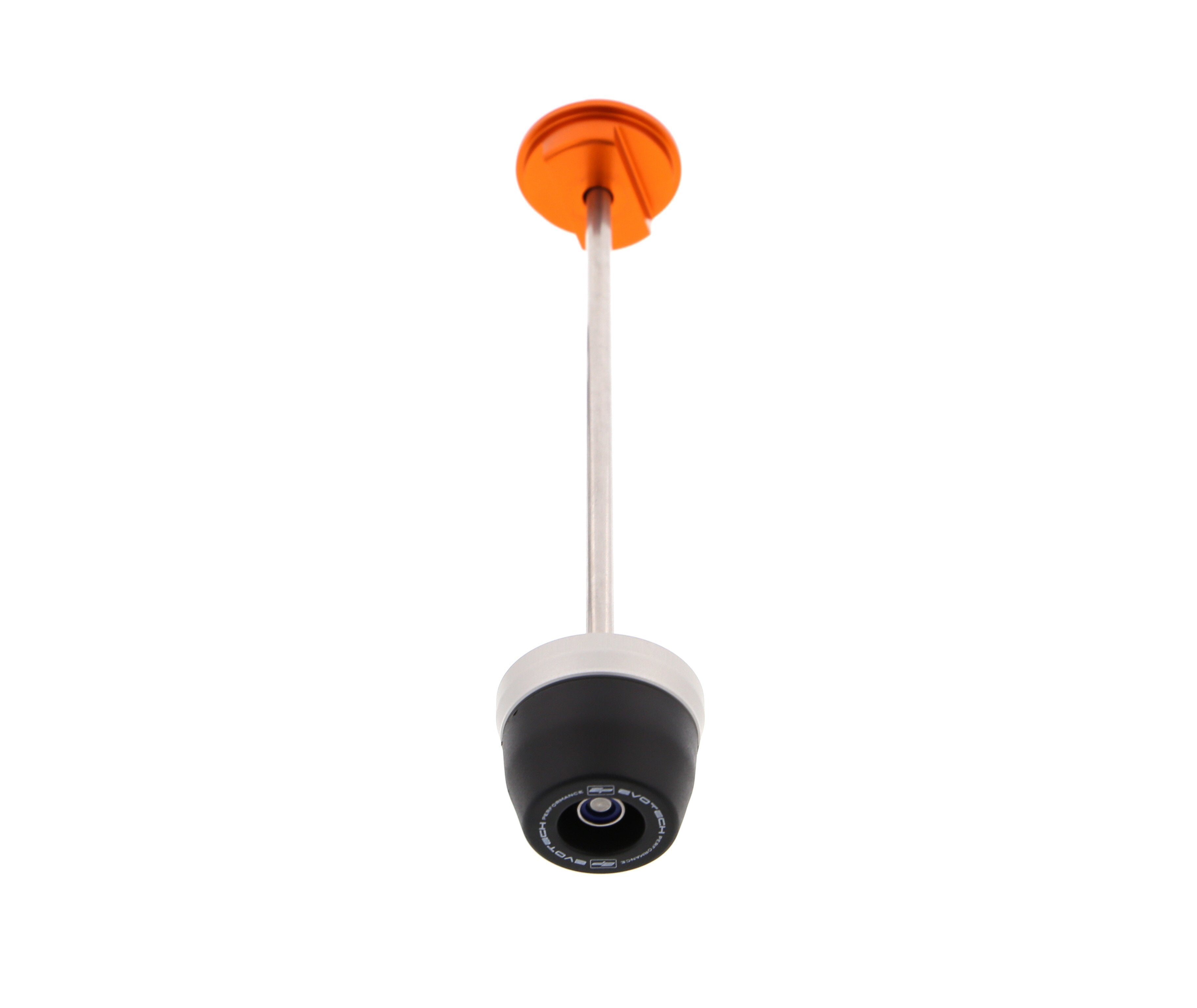 Designed to offer protection to the expensive swingarm, EP Rear Spindle Bobbins for the KTM 1290 Super Duke R Evo features a crash bobbin on the driveline side of the motorcycle. The bobbin is formed from a nylon outer with an aluminium inner to offer robust protection. The nylon slider is designed to rotate on impact to reduce stress on the wheel. On the opposite side, an attractive orange-anodised hub stop guards the end of the through-spindle.