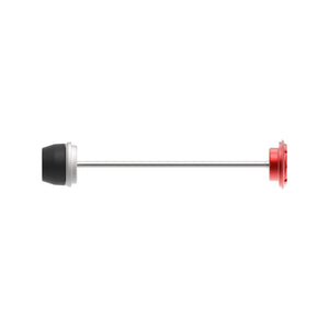 EP Rear Spindle Bobbins for the MV Agusta Brutale 800 RR LH44 offer protection for the expensive swing arm and sprocket carrier. If the unfortunate occurs, the bobbin should receive impact first. The innovative bobbin design allows the nylon outer to rotate above the aluminium core to reduce stress on the wheel. On the exhaust side, an attractive red-anodised hub stop secures the spindle rod in place.