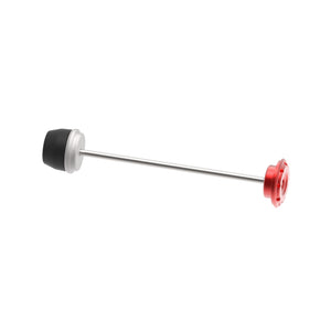 EP Rear Spindle Bobbins for the MV Turismo Veloce 800 Lusso SCS offer protection for the expensive swing arm and sprocket carrier. If the unfortunate occurs, the bobbin should receive impact first. The innovative bobbin design allows the nylon outer to rotate above the aluminium core to reduce stress on the wheel. On the exhaust side, an attractive red-anodised hub stop secures the spindle rod in place.