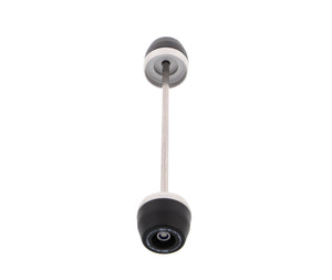 Sited either side of the rear wheel spindle, the EP Rear Spindle Bobbins are expected to take the initial impact in an incident. The durable materials and innovative design may save the swing arm and sprocket carriers from expensive harm. The nylon bobbin head and aluminium core are held through the rear spindle of the GSX-S1000 by a rolled-thread stainless steel spindle rod. The nylon is free to move with impact to reduce stress on the wheel and improve durability.