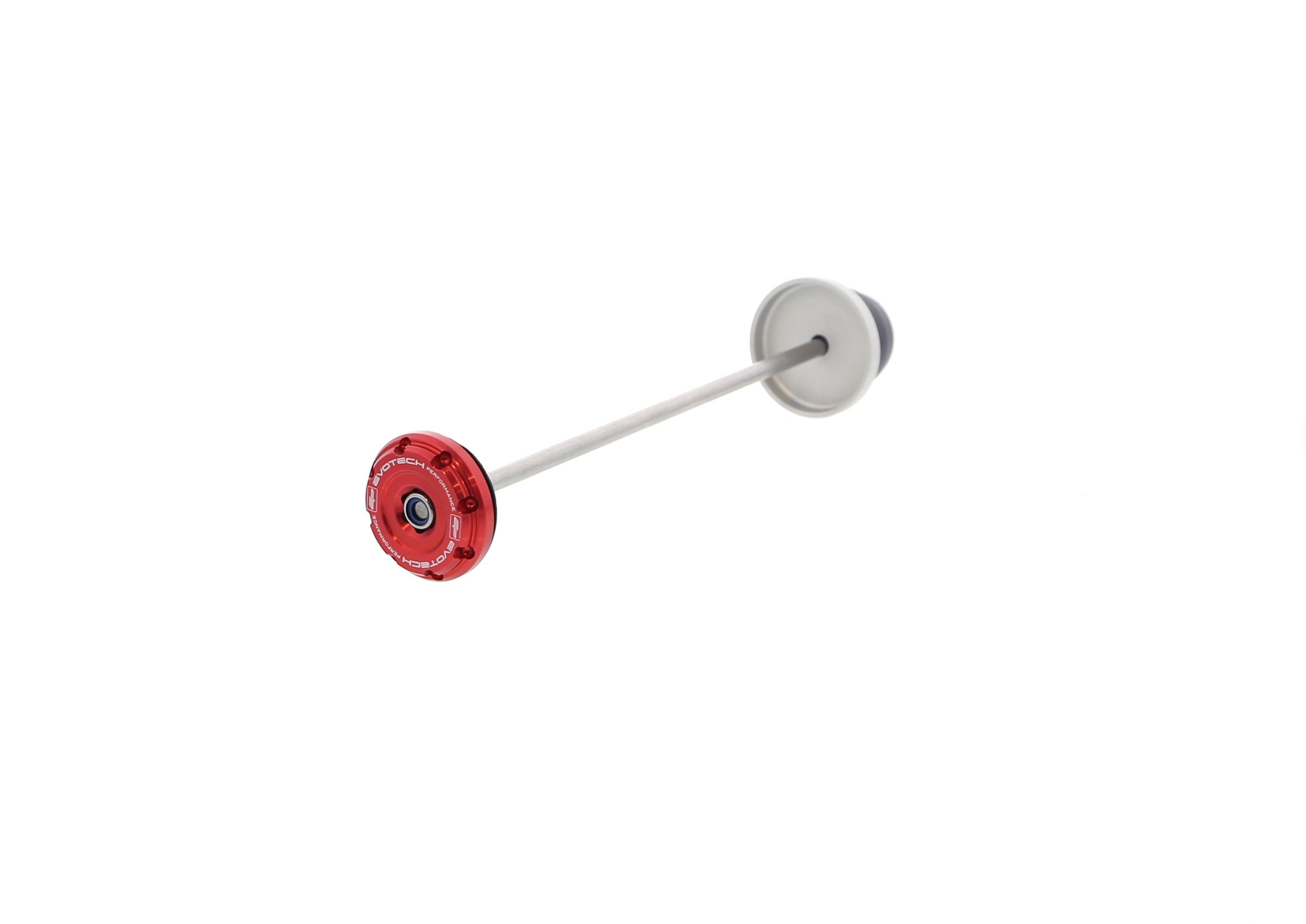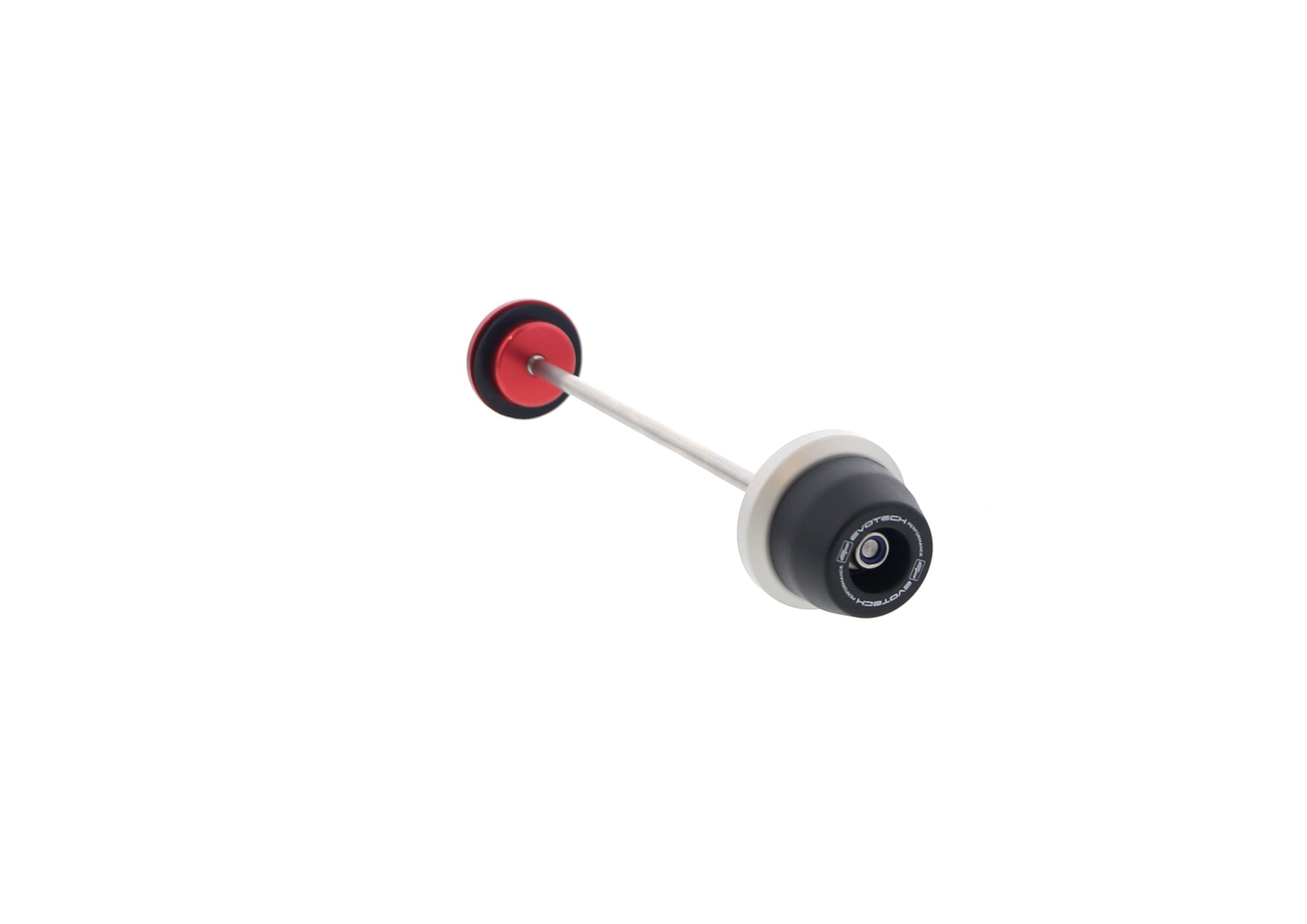 Using Evotech Performance's innovative design, EP Front Spindle Bobbins for the Honda CB1000R Neo Sports Cafe offer crash protection to the lower front forks, rear swingarm and brake calipers. The nylon bobbins extend from the wheels, designed to receive first impact and decrease damage to the motorcycle. Inside the nylon is a strong aluminium core which connects to the wheel via a rolled thread stainless steel spindle. At the front, a replacement spindle bolt is provided with a machined space for the spindle rod to slide through. The rear spindle features a protective bobbin for the nearside and the offside is completed by an anodised red hub stop.