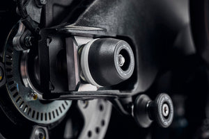 Offering protection to the wheel spindle, lower front forks, brake calipers and swingarm to the Suzuki GSX-S1000GT, EP Spindle Bobbins crash protection kits are made from engineering grade materials. The black bobbins sit neatly either side of the wheel spindle, held in place by a rolled-thread spindle rod. The durable materials of injection-moulded nylon and aluminium intend to be first to receive impact should an incident occur, reducing costly wear and damage to your motorcycle.
