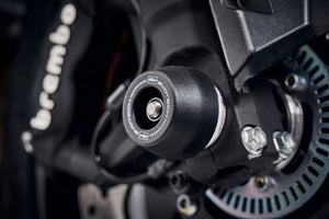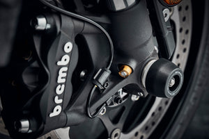 Offering protection to the wheel spindle, lower front forks, brake calipers and swingarm to the Suzuki GSX-S1000Z, EP Spindle Bobbins crash protection kits are made from engineering grade materials. The black bobbins mount neatly either side of the wheel spindle, held in place by a rolled-thread spindle rod. The durable materials of injection-moulded nylon and aluminium hope to be first to receive impact should an incident occur, reducing costly wear and damage to your motorcycle.