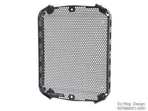 The EP Radiator Guard protects the Triumph Scrambler 1200 X radiator from damage caused by road / off-road debris (stones, mud, dropped waste etc) while at the same time allowing cool air to pass through. The radiator's thin, soft aluminium cooling fins easily bend, and bent fins can restrict airflow, which can lead to overheating. The radiator's internal cores are also prone to being holed by stones that can be picked up by the front tyre and flung directly into the radiator. Leaking coolant can make the Scrambler 1200 X inoperable because of overheating, which, in turn, can quickly lead to engine damage.
