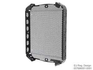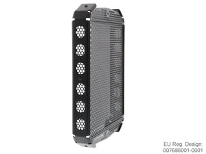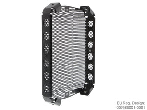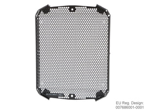 The EP Radiator Guard protects the Triumph Scrambler 1200 XE radiator from damage caused by road / off-road debris (stones, mud, dropped waste etc) while at the same time allowing cool air to pass through. The radiator's thin, soft aluminium cooling fins easily bend, and bent fins can restrict airflow, which can lead to overheating. The radiator's internal cores are also prone to being holed by stones that can be picked up by the front tyre and flung directly into the radiator. Leaking coolant can make the Scrambler 1200 XE inoperable because of overheating, which, in turn, can quickly lead to engine damage.