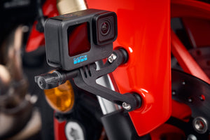 The Evotech Performance motorcycle camera mount is compatible with all action camera devices using the universal action camera mounting system.