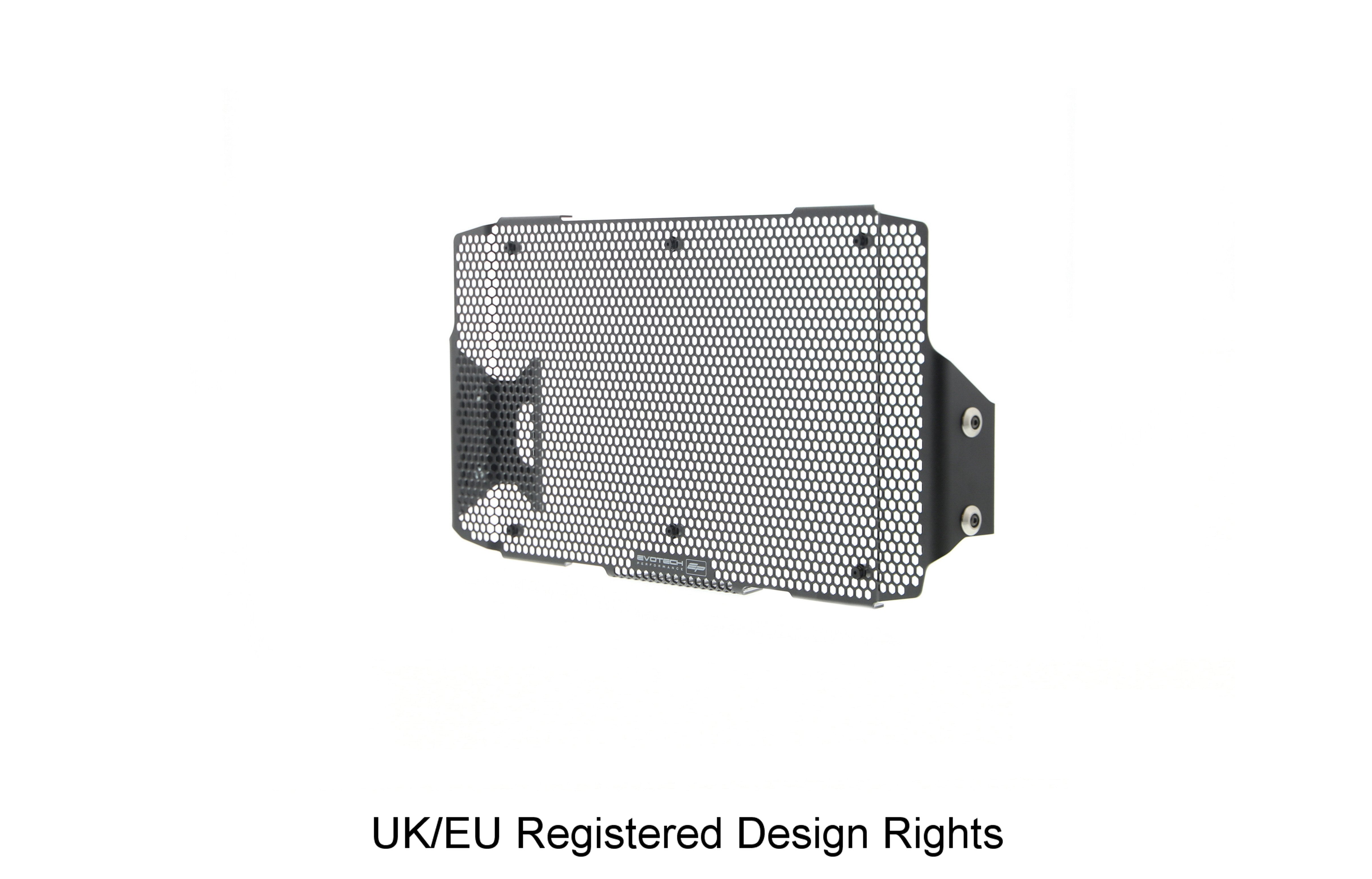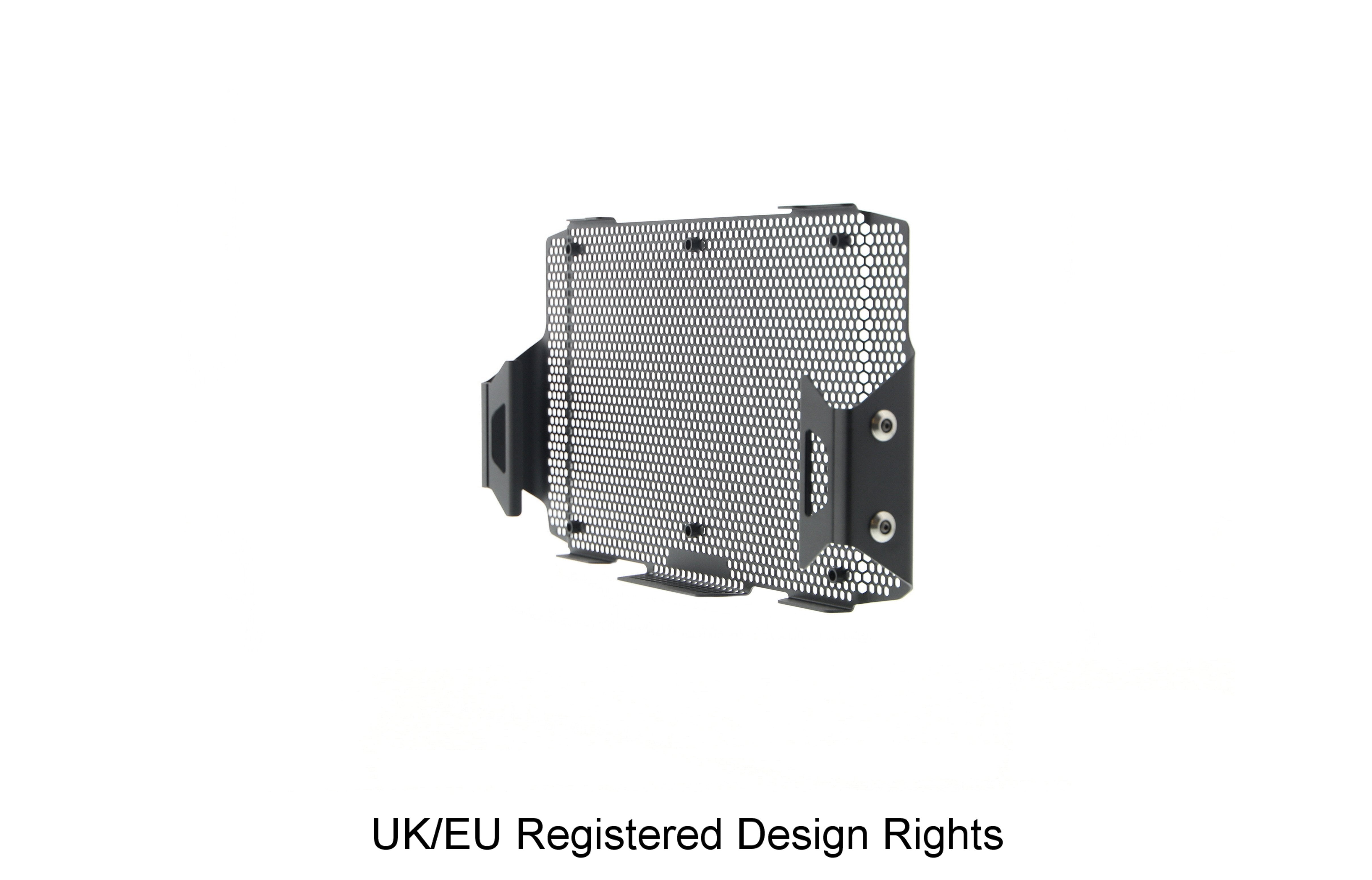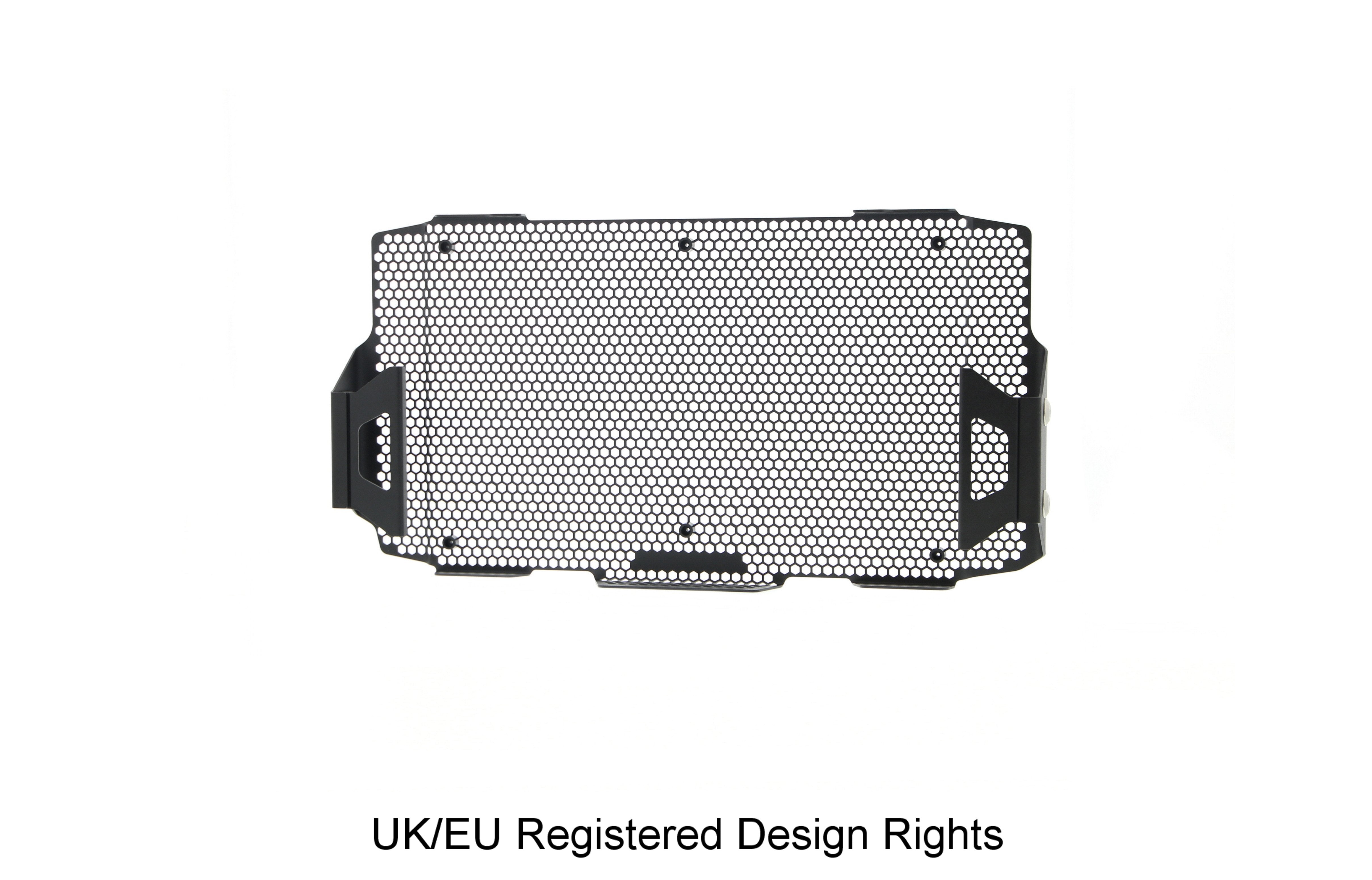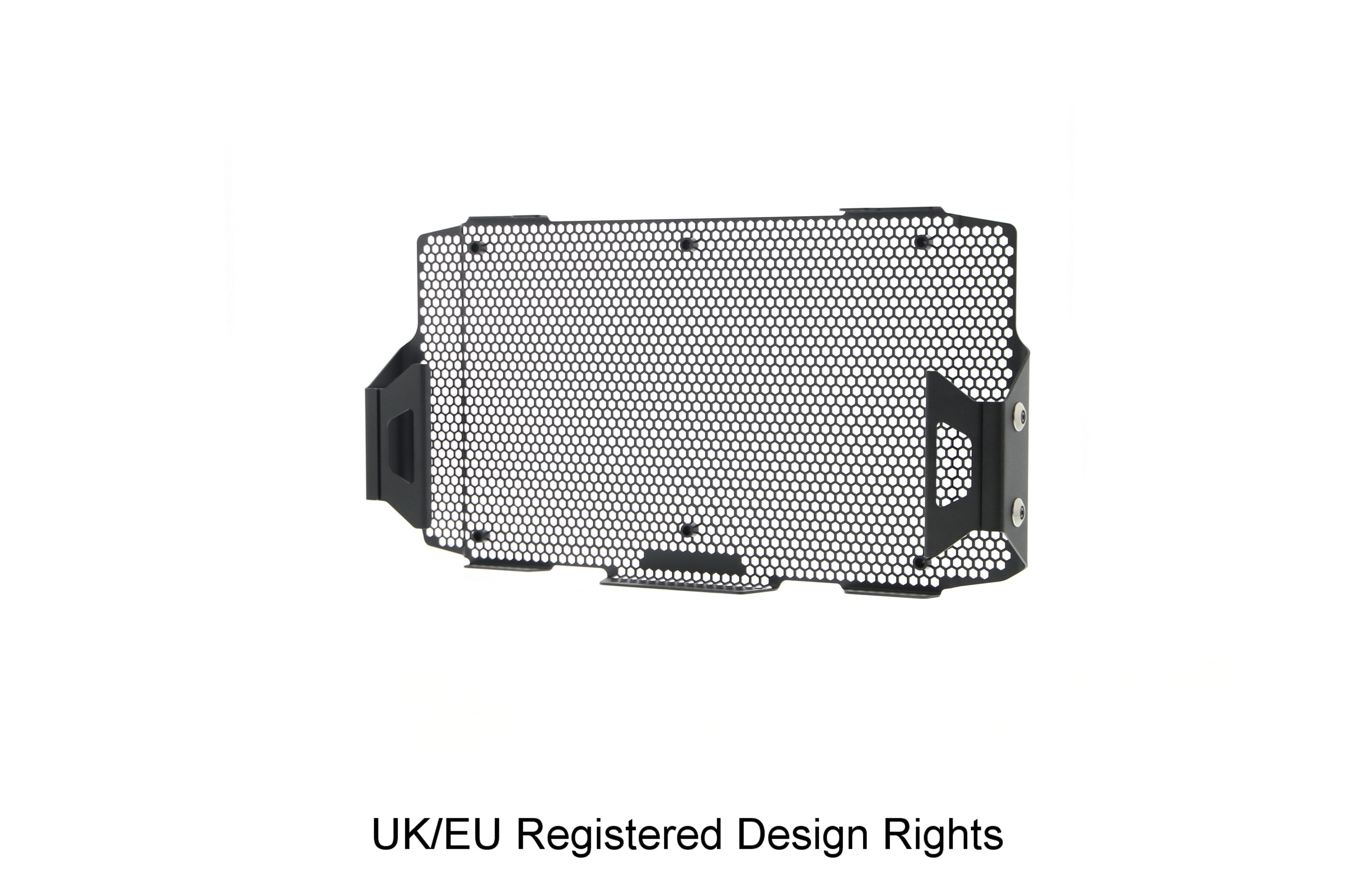 An EP Radiator Guard protects the radiator from road debris damage while allowing cooling air to pass through. The radiator's delicate fins easily bend from being hit by debris to restrict the flow of cooling air, which can lead to overheating and reduced engine performance. The radiator's internal core is also susceptible to being holed by stones flung directly into the area of the radiator. Leaking coolant will make the motorbike inoperable because of overheating, which can result in severe engine damage. If leaking coolant reaches the motorcycle's tyres it can cause loss of grip.
