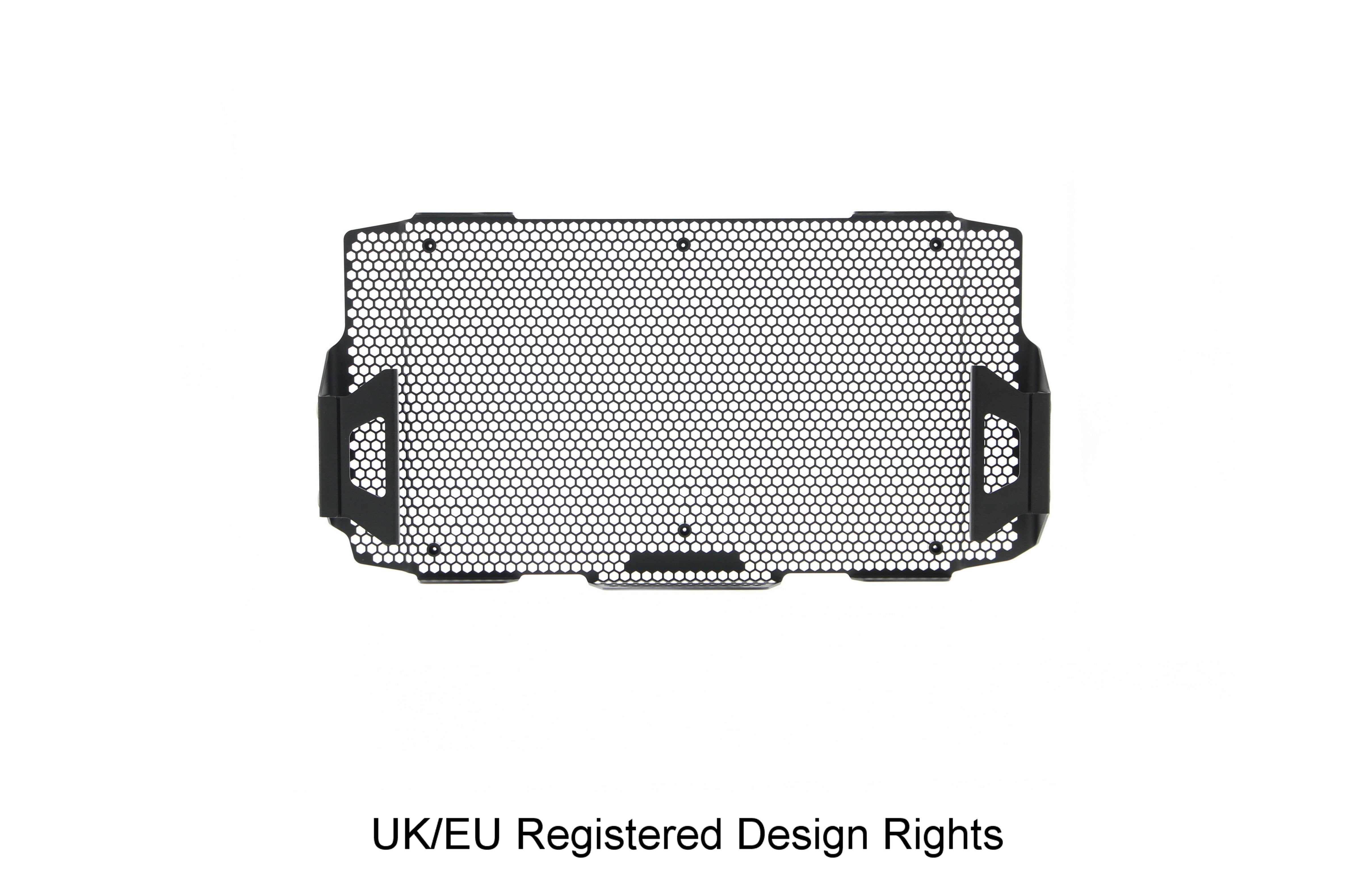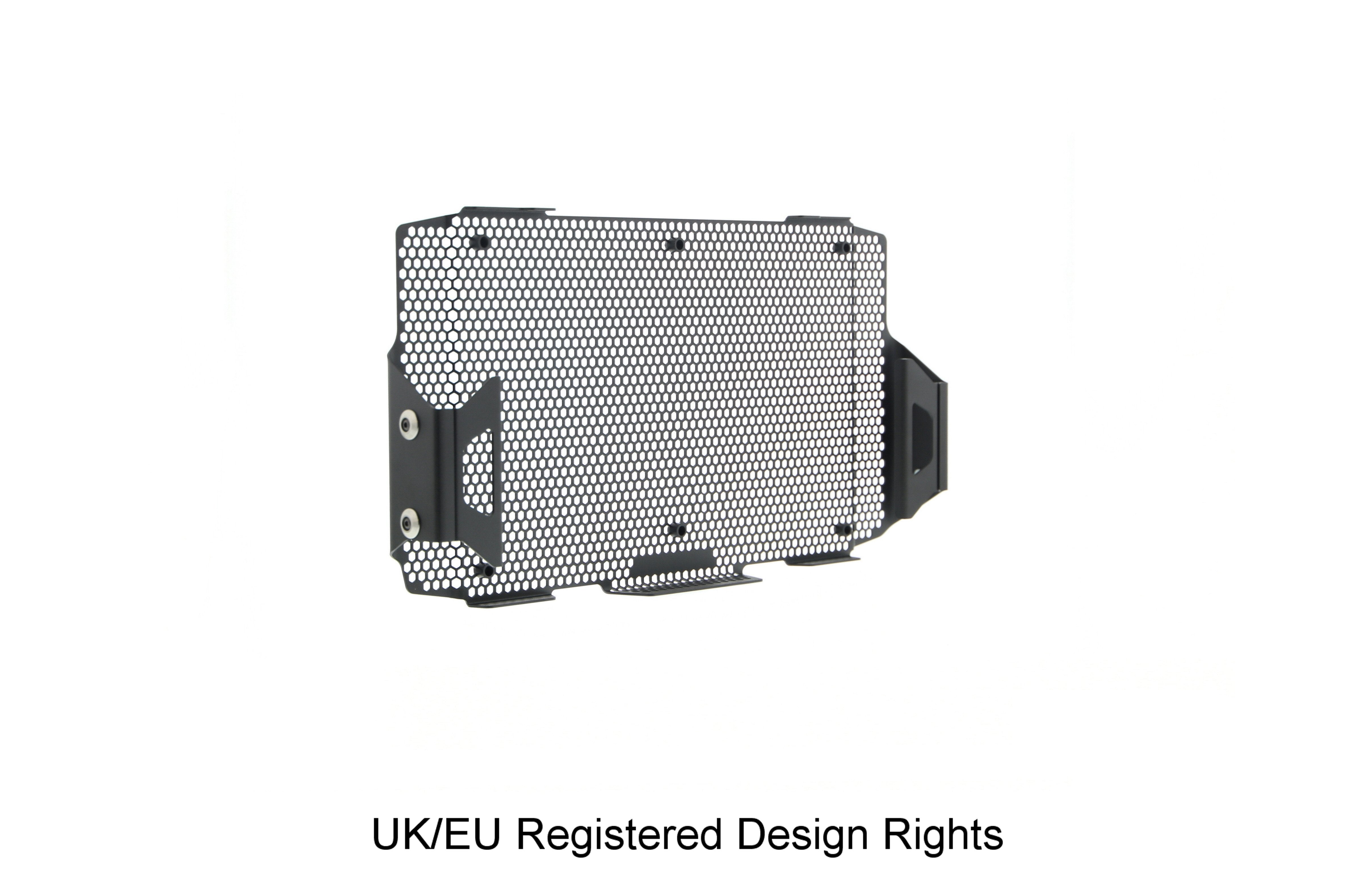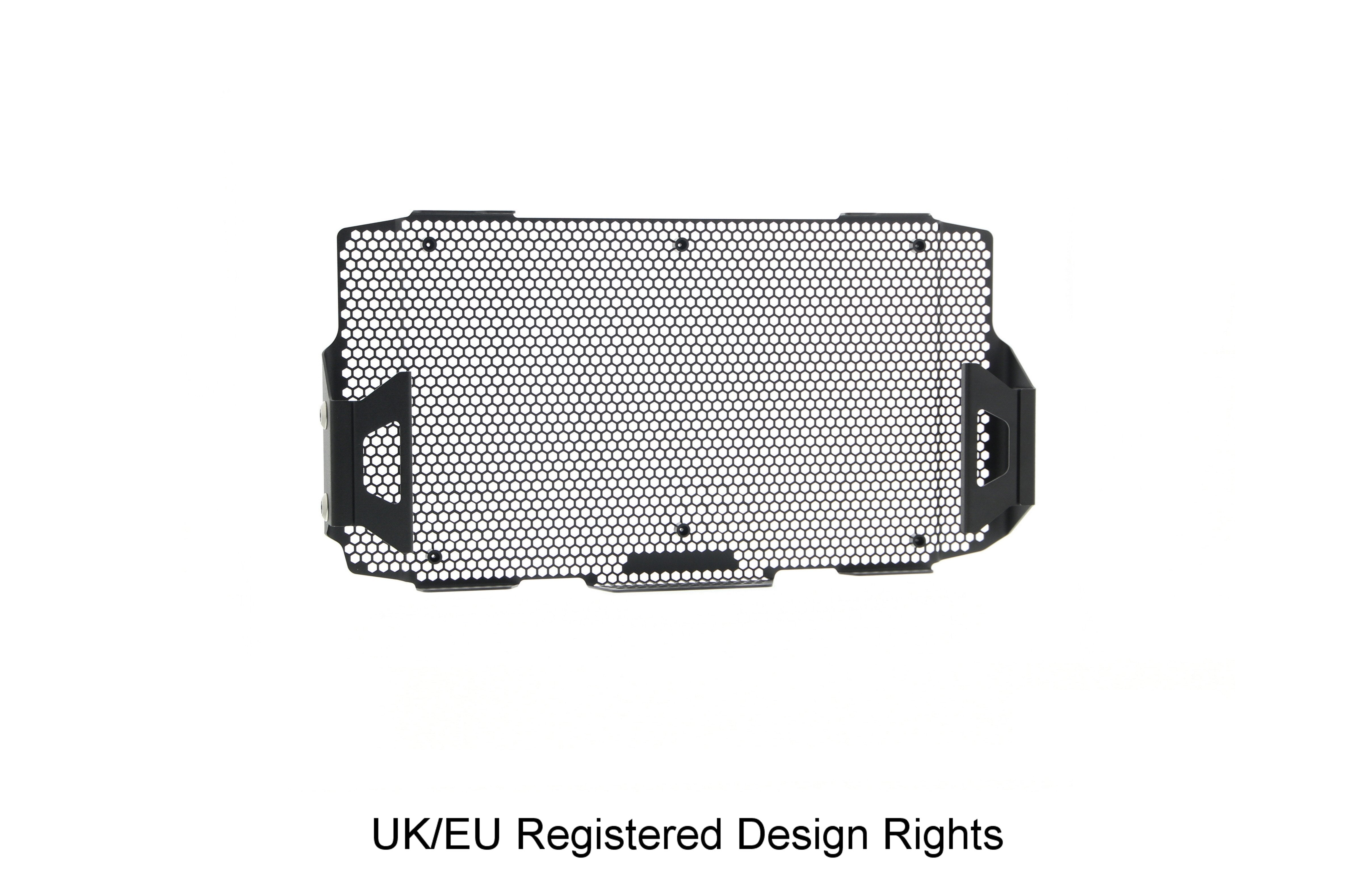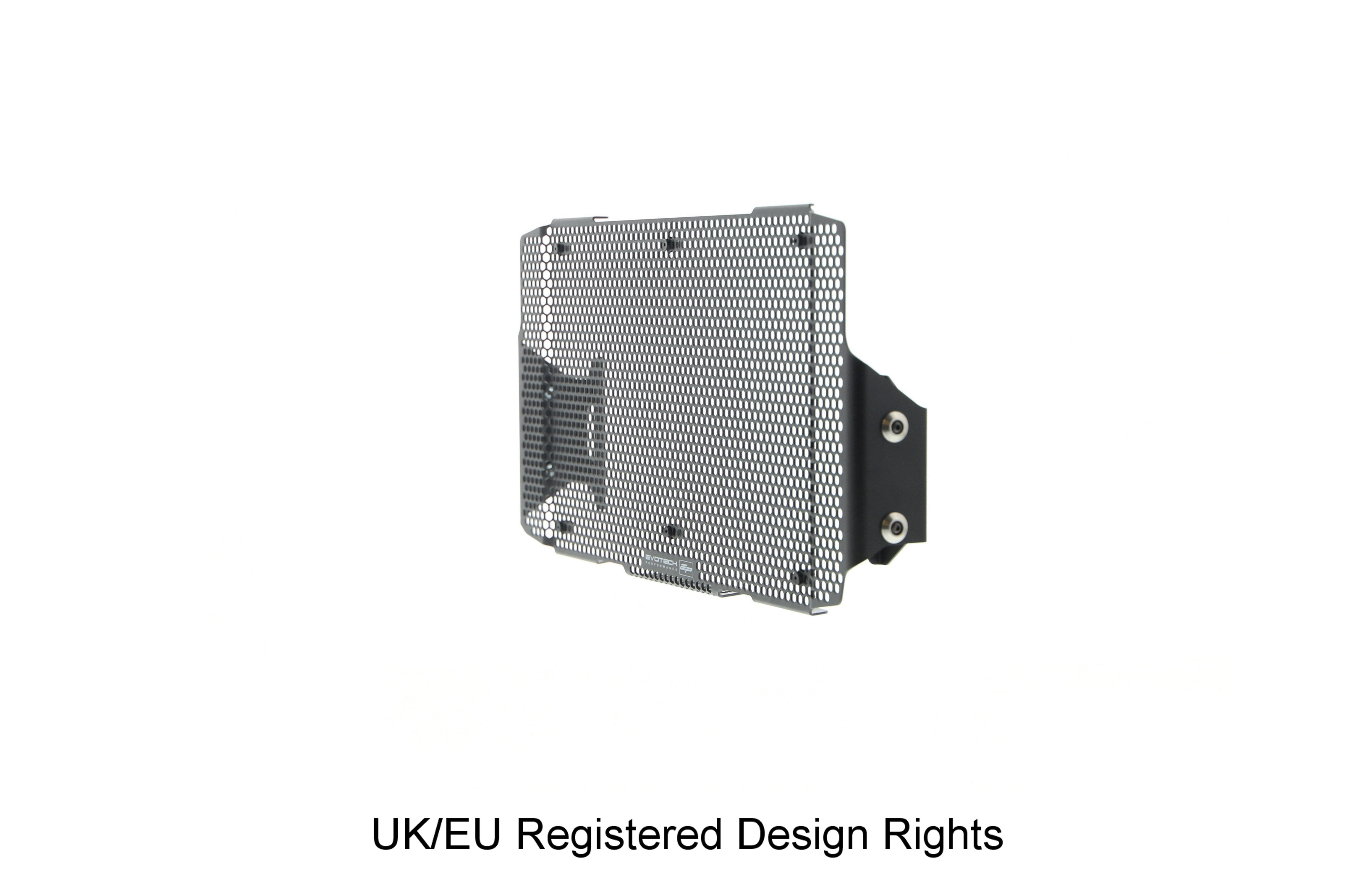 An EP Radiator Guard protects the radiator from road debris damage while allowing cooling air to pass through. The radiator's delicate fins easily bend from being hit by debris to restrict the flow of cooling air, which can lead to overheating and reduced engine performance. The radiator's internal core is also susceptible to being holed by stones flung directly into the area of the radiator. Leaking coolant will make the motorbike inoperable because of overheating, which can result in severe engine damage. If leaking coolant reaches the motorcycle's tyres it can cause loss of grip.