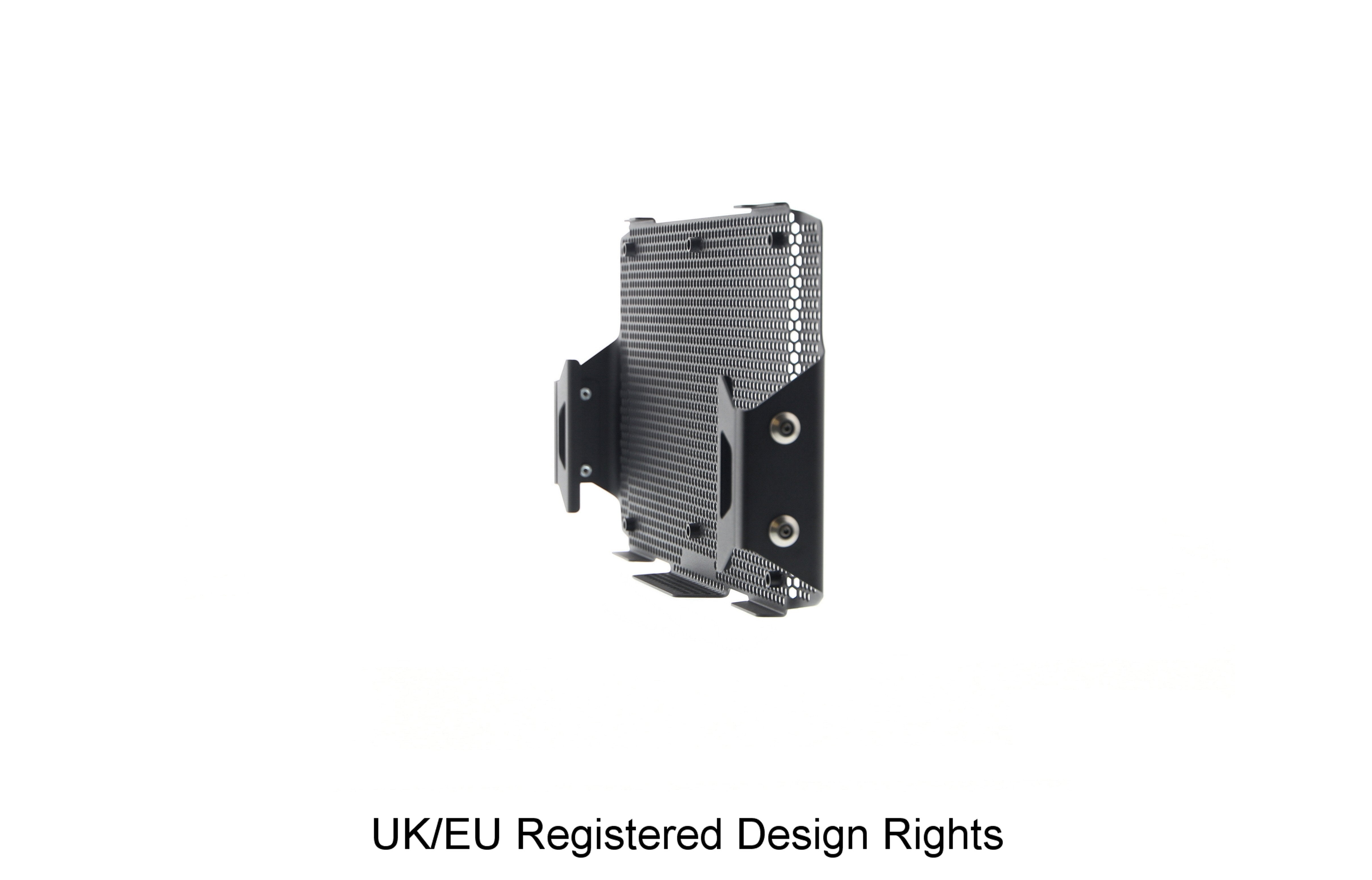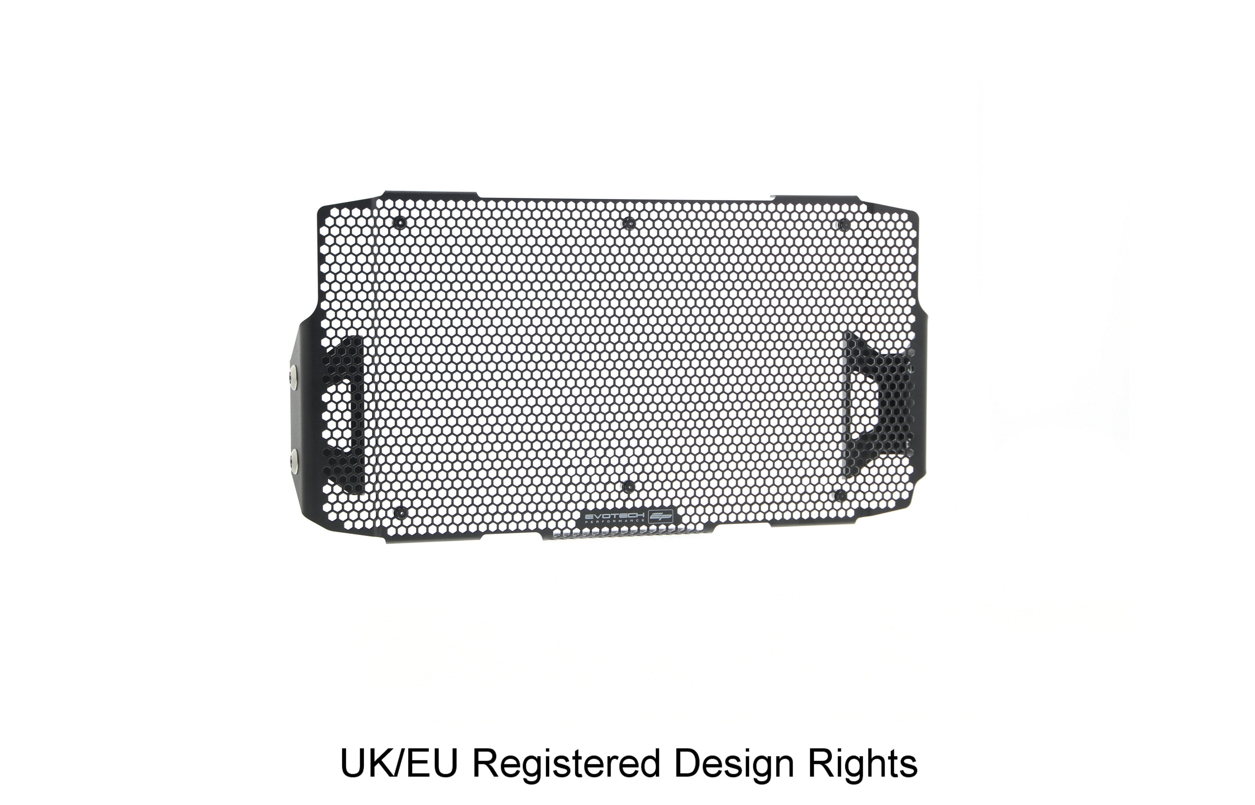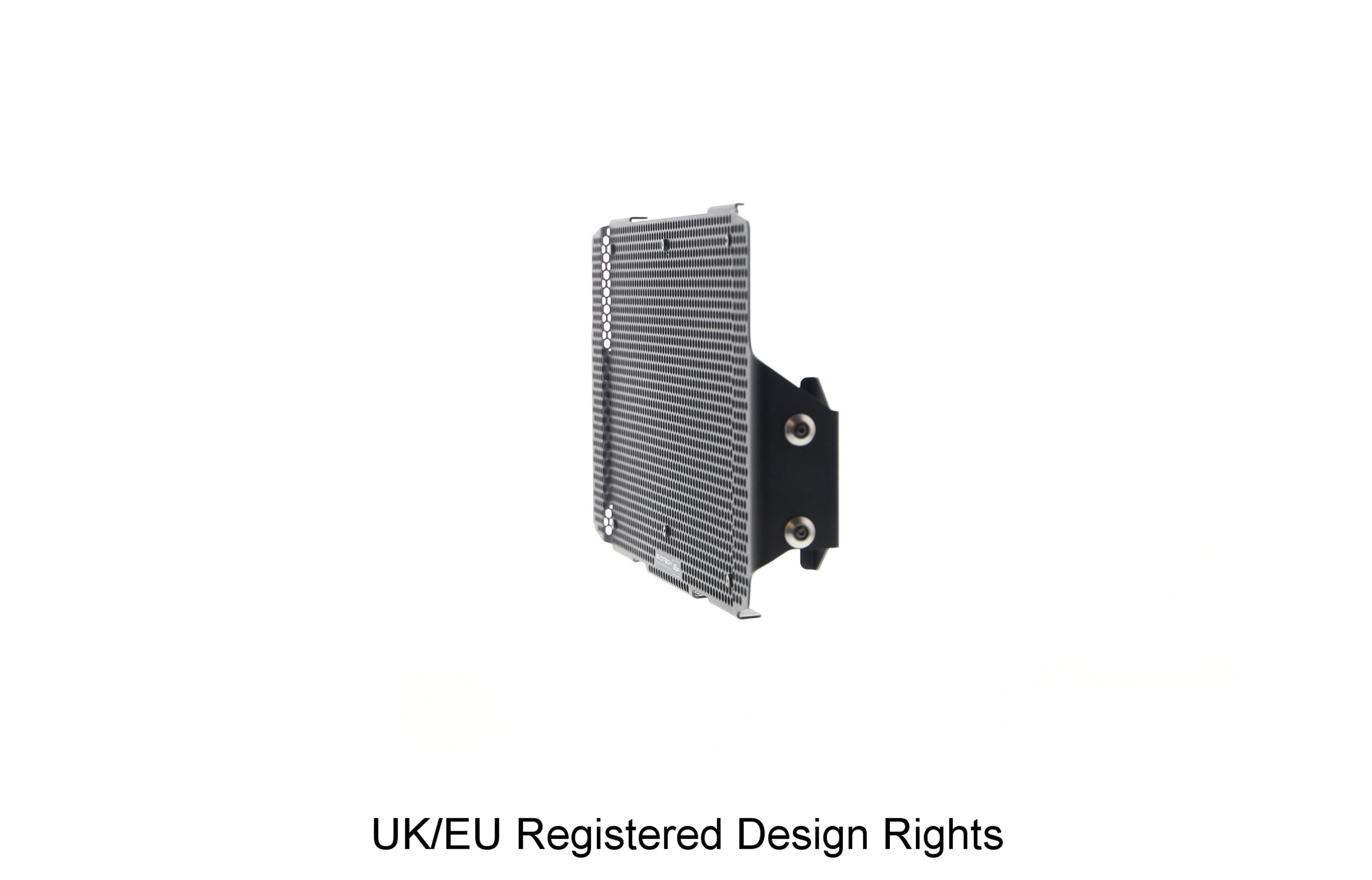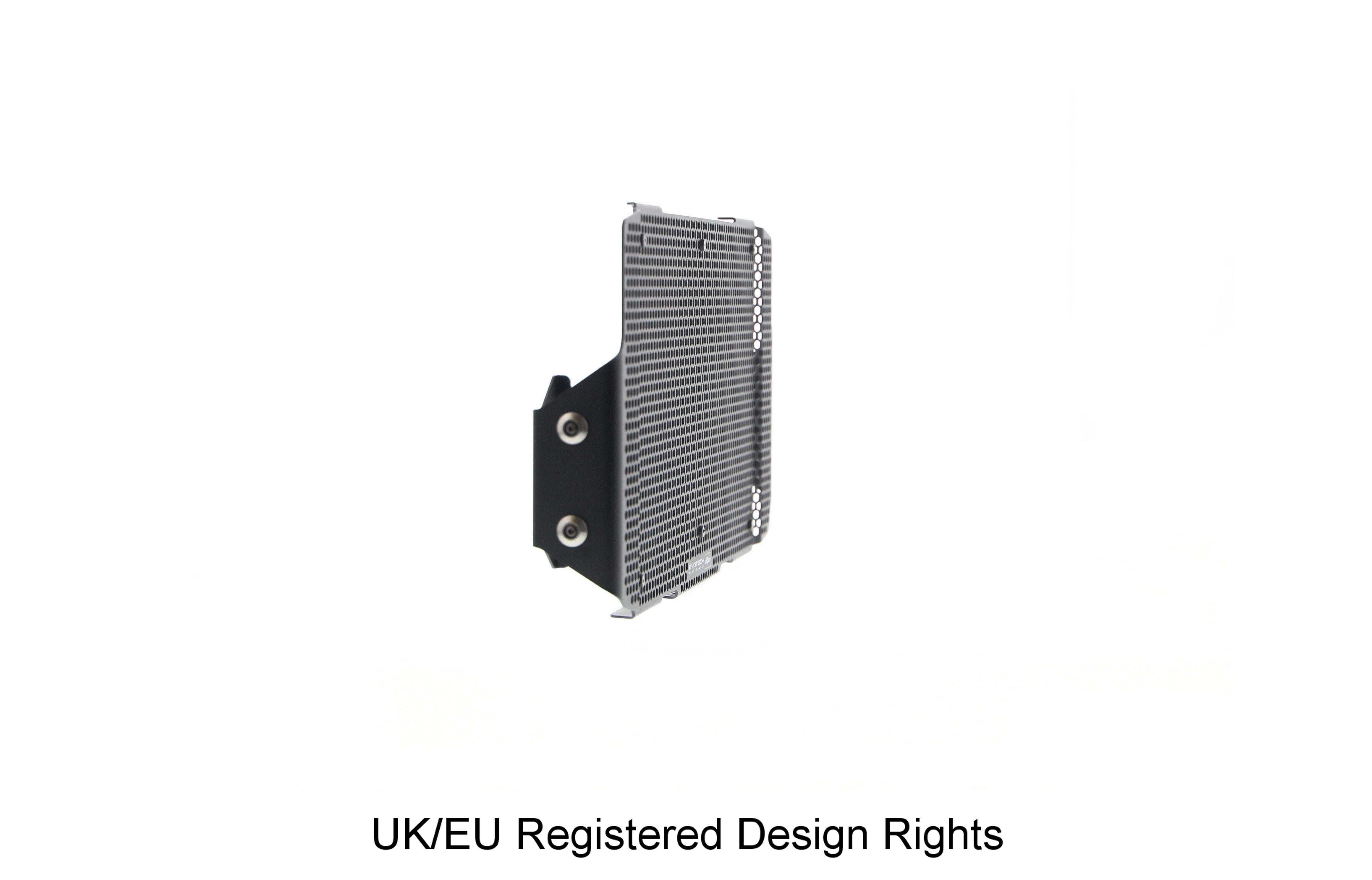 An EP Radiator Guard protects the radiator from road debris damage while allowing cooling air to pass through. The radiator's delicate fins easily bend from being hit by debris to restrict the flow of cooling air, which can lead to overheating and reduced engine performance. The radiator's internal core is also susceptible to being holed by stones flung directly into the area of the radiator. Leaking coolant will make the motorbike inoperable because of overheating, which can result in severe engine damage. If leaking coolant reaches the motorcycle's tyres it can cause loss of grip.