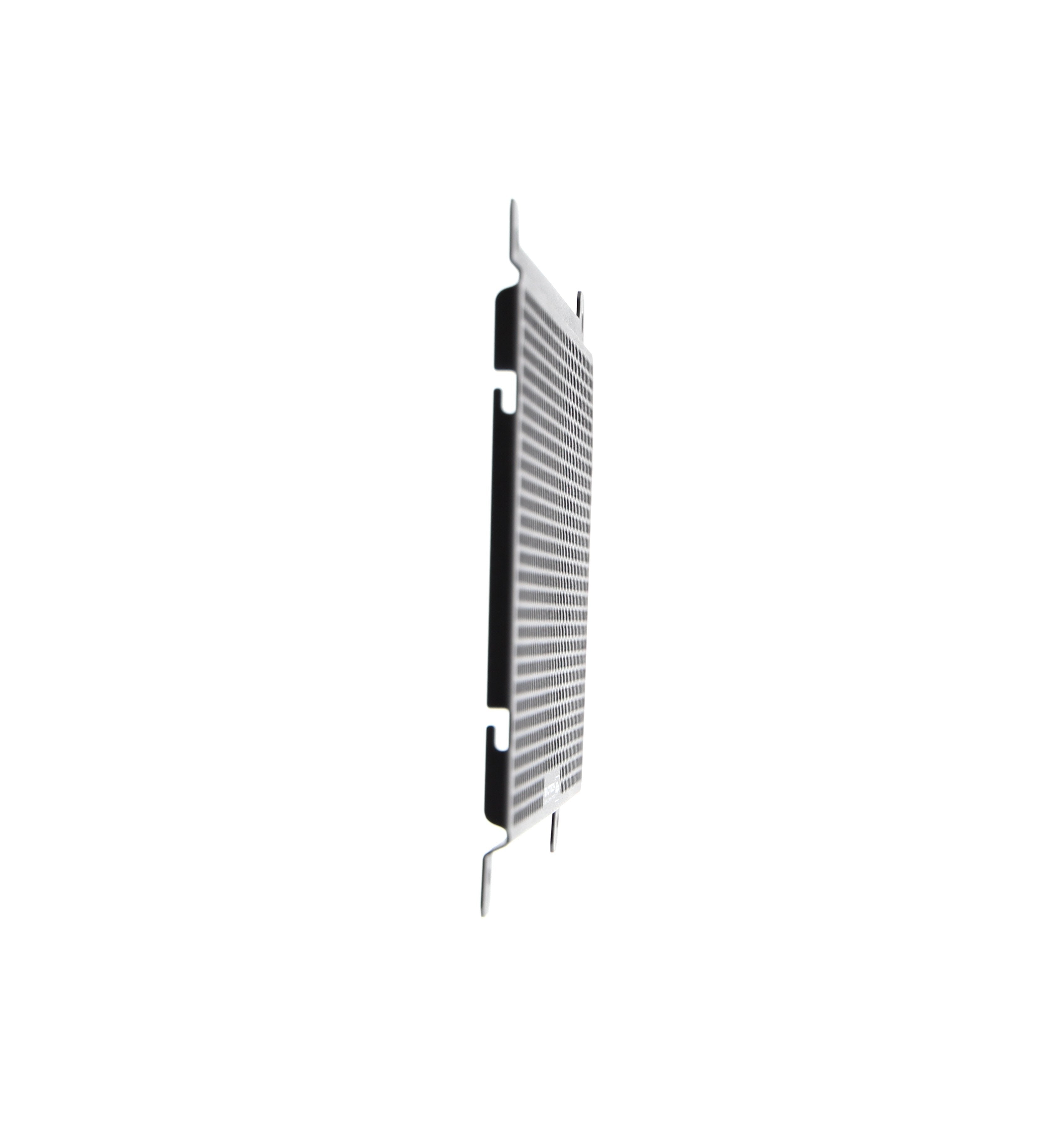 Hexagonal hole pattern to optimise airflow whilst providing maximum protection from road debris.