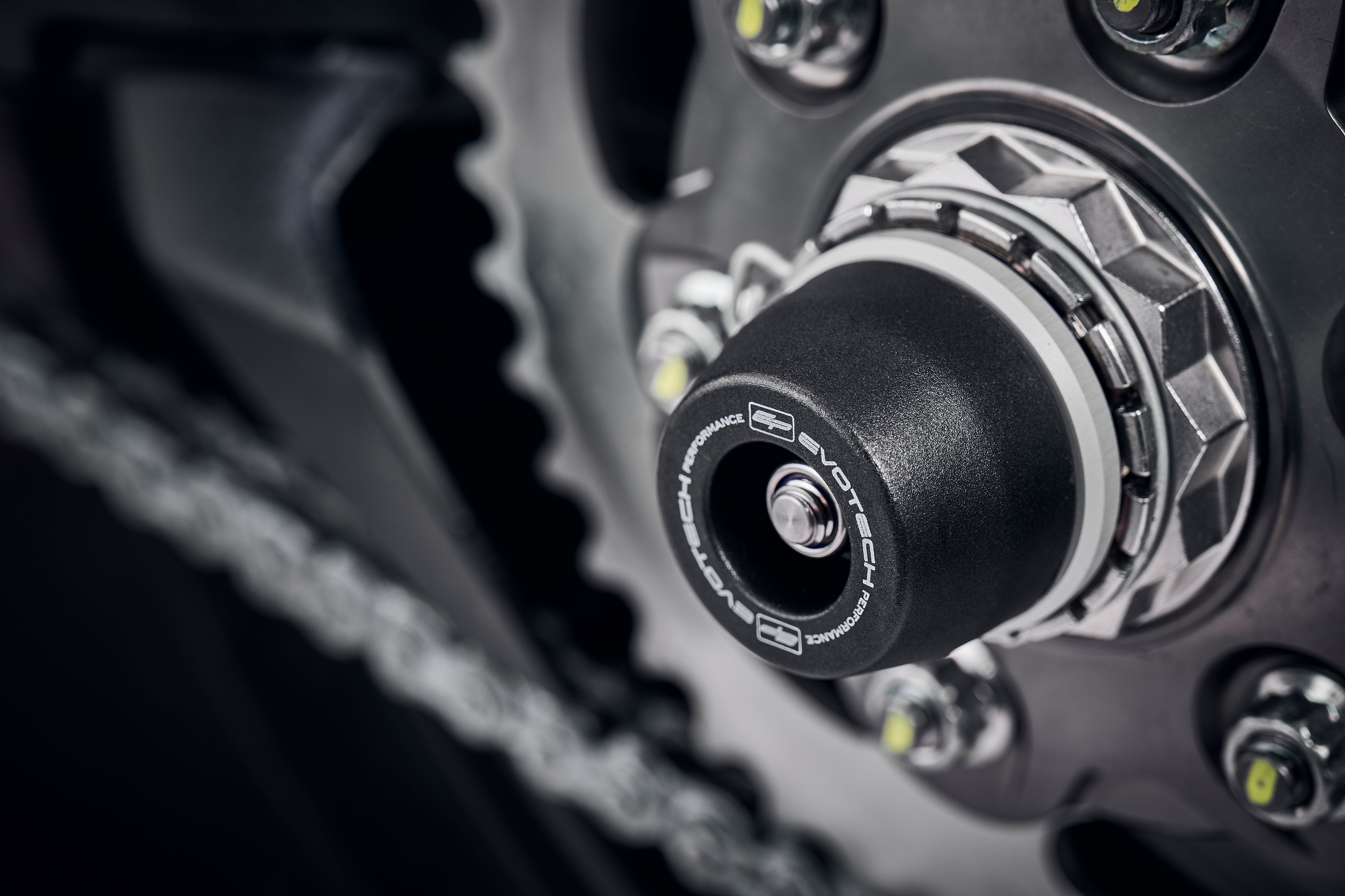 - Protects the single-sided swing arm and sprocket carrier