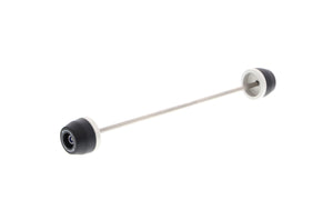 The nylon bobbin, with reinforcement from the aluminium core, extends from either side of the expensive swing arm to be the first to receive impact in any incident. With EP's innovative design, the nylon can revolve with the impact and reduce stress and damage on the motorcycle. These crash protectors are mounted to the rear wheel by a strong roll threaded stainless steel spindle rod.