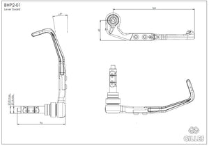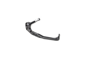 The well-known and popular two-part structure of our lever protector has remained. In addition. the arm made of very resistant plastic-glass fiber mix. the clamping element for the steering tube and the black hard-anodized aluminum bracket have been fundamentally revised.
