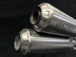 With noise emission regulations becoming stricter worldwide and facing increased criticism from the public, Vandemon developed Titanium Slip-On mufflers & link pipes to replace the heavy steel OEM exhaust.