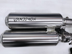 IMPORTANT! Vandemon Exhaust systems are designed for performance and modest sound improvements. We at Vandemon do not try to meet noise emission standards because the end results would be no different from what your OEM exhaust can already achieve. Check with your country's governing body regarding noise emission standards rules and regulations.