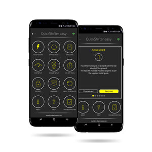 Healtech Electronics QuickShifter easy utilises Bluetooth or WiFi technology iOS + Android app for setup.