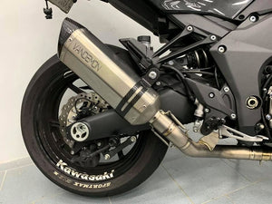The Kawasaki Z1000SX single-sided exhaust system is made from the highest quality Japanese Ti1 titanium & uses a single titanium muffler with a carbon fibre tip. As a result, the complete system is much lighter than the OEM twin-muffler steel exhaust system. The resulting weight reduction noticeably improves directional changes in handling and acceleration and reduces stopping distances.