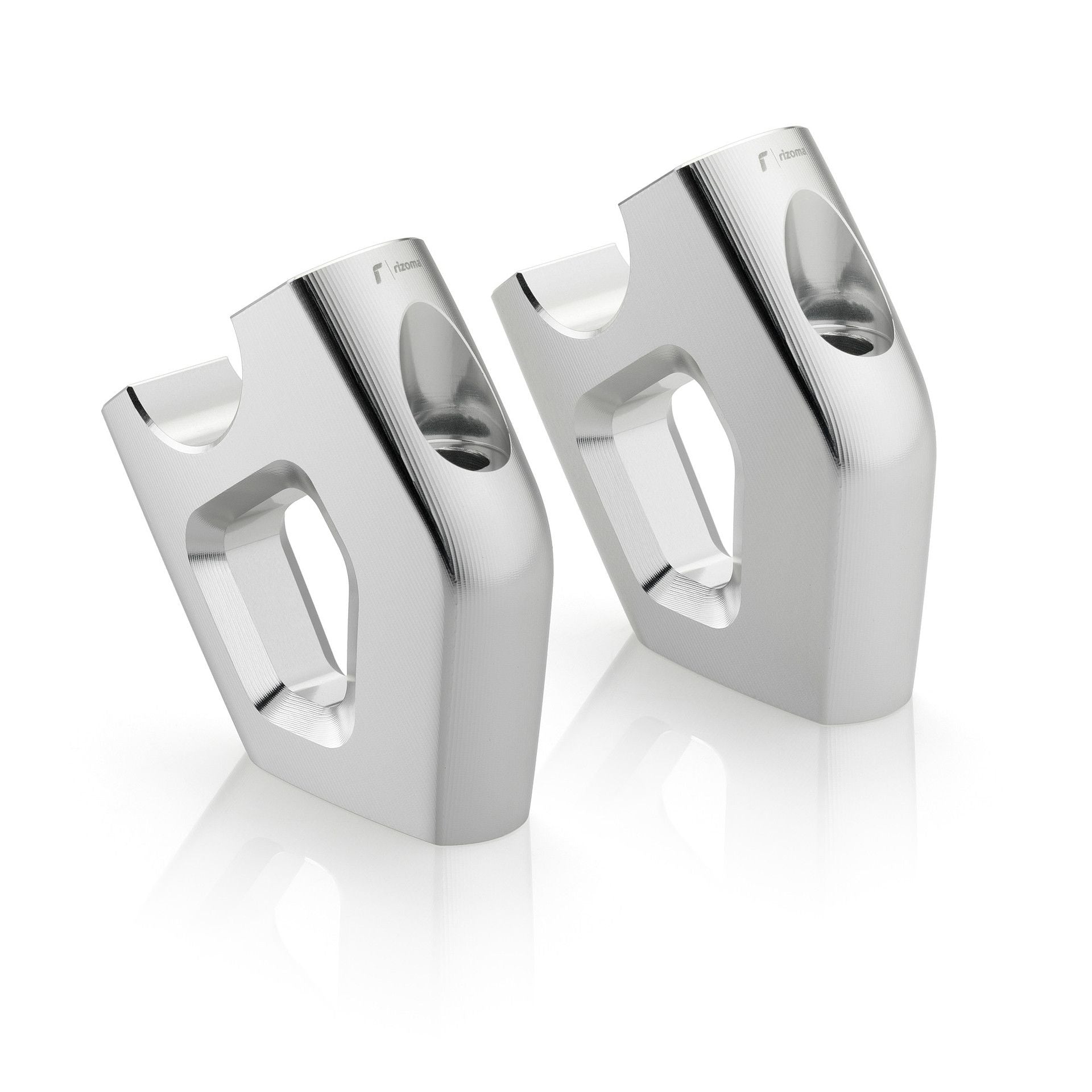 The Riser Kit is made from billet aluminum. Height +10 mm and set back -30 mm for improved comfort and riding pleasure.