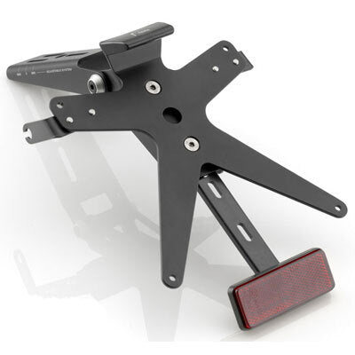 Made from aluminum, each Fox license plate kit is specifically designed for a corresponding motorcycle model. This means it matches the motorcycle styling perfectly and is quick and easy to install. Each kit actually includes everything required to fit it without requiring any modifications to OEM parts. Great functionality plus maximum compactness, but always in complete compliance with legal requirements. Fox kits include an SMD LED license plate light, reflector and Rizoma turn signal supports. They are adjustable and supplied with a safety lock to ensure the correct tilt.