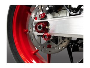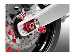 These components offer dual functionality: they serve as a support for the rear stand and also protect the swingarm from potential damage. The plastic slider can be easily removed, transforming the components into simple bobbins for the stand, depending on your needs.