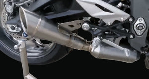 The Vandemon Full Titanium Exhaust and Slash Cut Muffler is a high-performance system made from Ti1 titanium. It is much lighter than the OEM steel exhaust and improves handling, acceleration, and stopping distances.