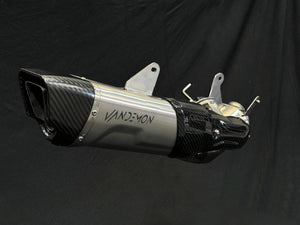 IMPORTANT! Vandemon Exhaust systems are designed for performance and modest sound improvements. We at Vandemon do not try to meet noise emission standards because the results would be no different than what your OEM exhaust can already achieve. Check with your country's governing body regarding noise emission standards rules and regulations.